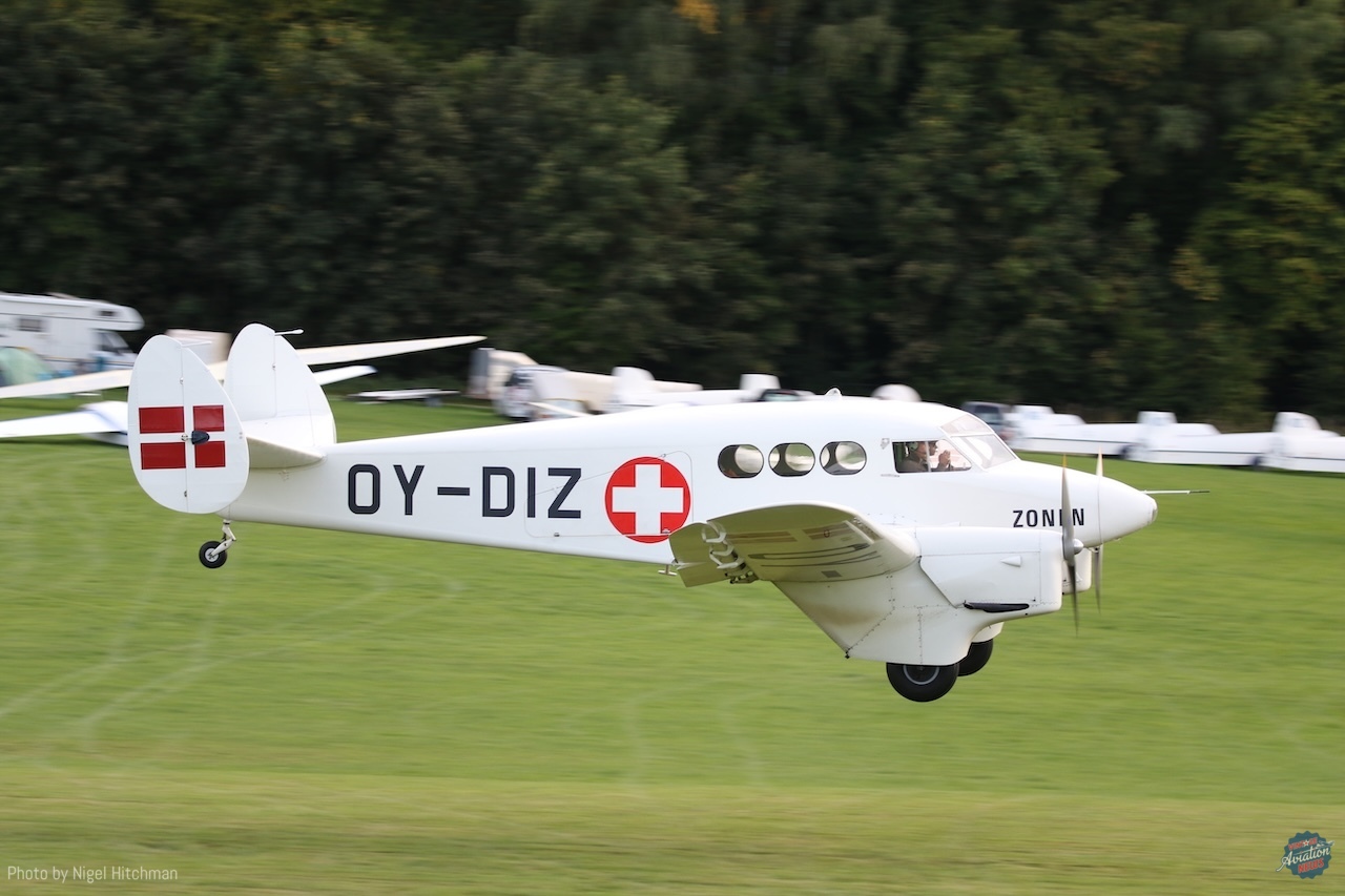 A highlight for many was the appearance of the KZ.IV ambulance OY-DIZ from Stauning in Denmark. This is a true “warbird,” having first flown in 1944 and used to rescue Danish citizens from concentration camps upon their liberation. Designed for two flight crew, two stretcher cases, and two medical attendants, it was the first time this aircraft had travelled far from its Stauning base in many years. Powered by two de Havilland Gipsy Major engines, the KZ.IV was built by Skandinavisk Aero Industri A/S, founded by Viggo Kramme and K.G. Zeuthen in 1937. The company produced various “KZ” models, including the KZ.I single-seater and KZ.II tandem-seater before World War II, and other models from 1944 until the company ceased operations in the early 1950s. The KZ.IV is now owned by the Danmarks Flymuseum.