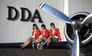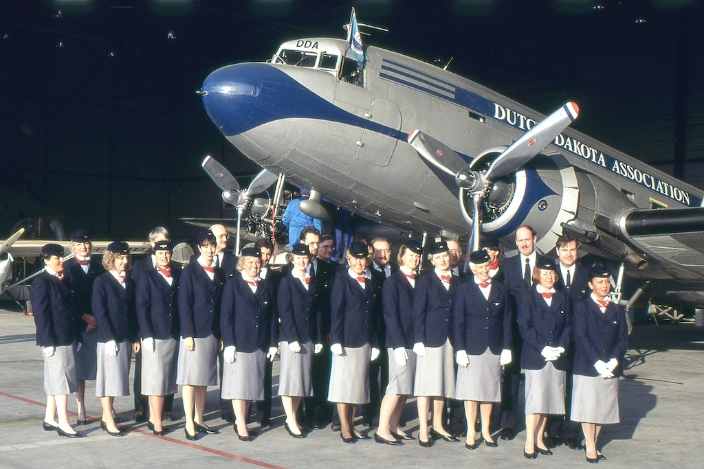 Founded in 1982 by two Transavia pilots, the all-volunteer DDA received the first DC-3, PH-DDA (former DO-7) from the Finnish Air Force in May 1984. Meanwhile, a solid technical department was formed by recently retired KLM certifying staff supported by younger enthusiasts eager to learn the ‘trade.’ Even before PH-DDA arrived, pilot ground training commenced and a complete airline-like organization was established with all related ground- and cabin staff. So from Summer 1984 and on, DDA-members were able to fly on scenic flights in ‘their’ DC-3 over the Netherlands and to air shows beyond. Much later, it was discovered that PH-DDA flew during D-Day for the USAAF in the 91th Troop Carrier Squadron with serial 42-100646, the very C-47 that carried 1st Lt. Dick Winters of 506 PIR ‘Easy Company,’ the Band of Brothers.