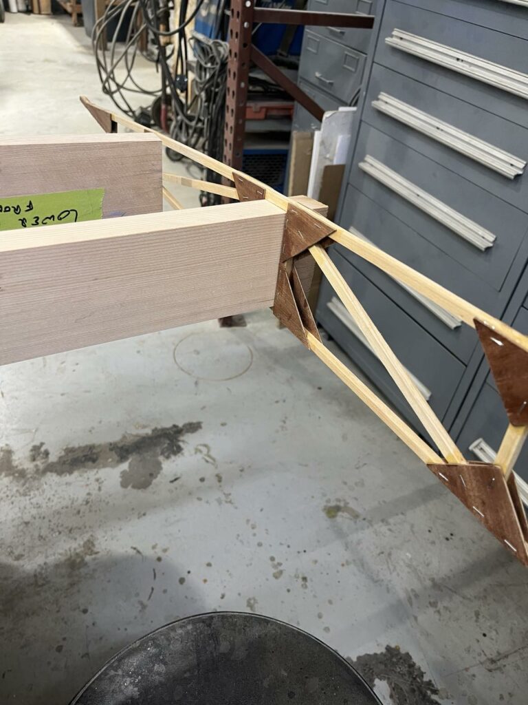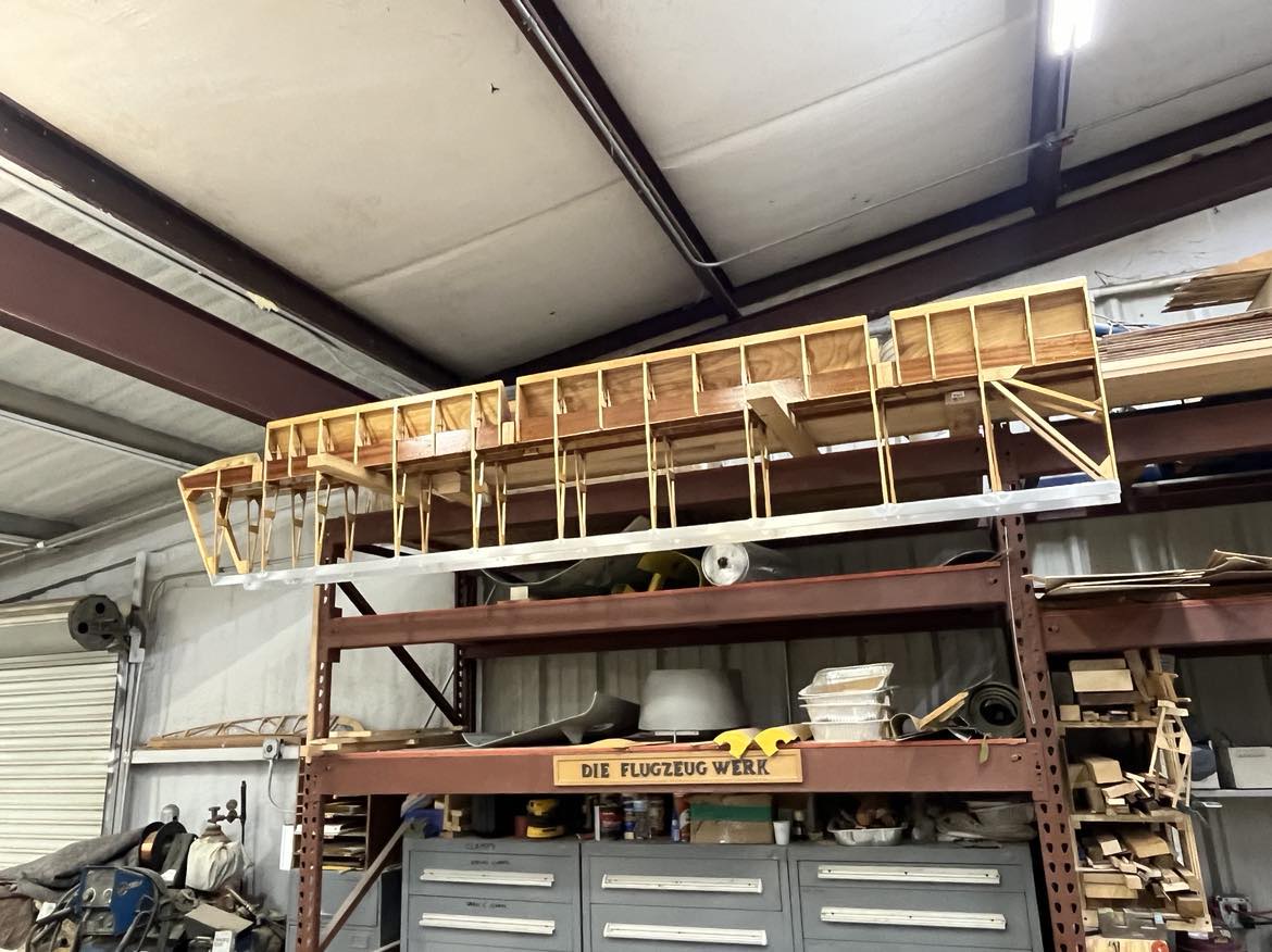 “Completing the wing panels and mating new ailerons to new wings and new wings to an old fuselage with new struts bracing the whole affair. The partial remating of the airplane before fabric is known as ‘dry rigging’ and is an important step. Now that completion of the new wings is a foregone conclusion, dry rigging is the next hurdle and will be a milestone because – for a few days – all of the major components of the airplane will be mated and it will sit on its own gear while we conduct a preliminary rigging of the wings and fine tune things like gear geometry (problematic on this airplane) and a few other odds and ends before it all comes back apart and the focus shifts to the fuselage and tail group.”