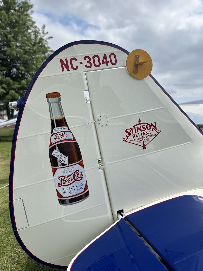 There is always something of interest for attendees of the annual Airventure at Oshkosh. In the Vintage Aircraft section, an award-winning Stinson SR-7B Reliant, fresh out of restoration, glistened on the grass in front of the Vintage Red Barn, resplendent in a blue and white scheme with hand-painted logos of the Pepsi-Cola beverage. Under its wings, stood Garry and Janne Ackerman of Plano, Texas, the owners of this magnificent machine, who told attendees all about the story of this airplane and the effort they helped start to return a basket case of an airplane back to its former glory.
