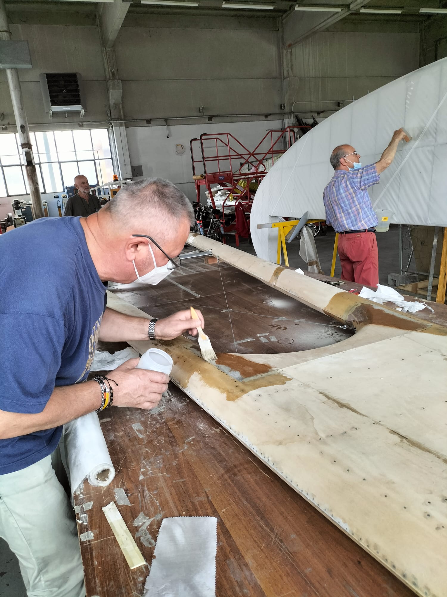 It seemed a mammoth task, given the aircraft’s large dimensions (a 25m wingspan, 93m2 wing surface area, 6 tons of wood, fabric, and metal), but the airframe slowly began to take shape at the Volandia Museum. (Volandia is the second largest aviation museum in Italy, housed in hangars once belonging to Caproni Aviation, the first Italian airplane manufacturer.)