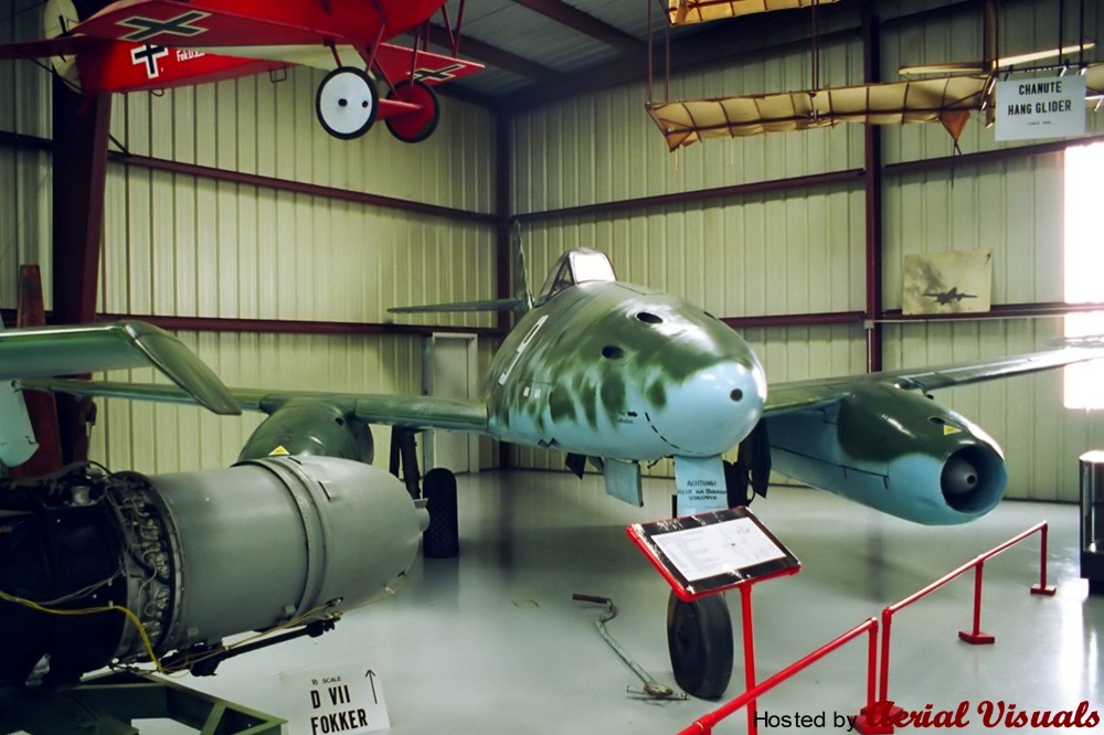 But luckily for the former Luftwaffe fighter, it would be saved from the scrapper’s torch by a young aircraft collector named Edward T. Maloney. Having grown up during the 1930s with a passion for aviation and filled with a drive to save as many historic aircraft as possible from the scrappers, Maloney would acquire Me 262 WkNr 500453 from Glendale and have it shipped to his home in Pomona as he worked to find a property to display this and other aircraft he saved. Among these were three more WWII fighters he had saved from Grand Central Airport (Bell P-63A Kingcobra 42-69080 (later acquired by the Yanks Air Museum in Chino, California and flown as “Fatal Fang”), Curtiss-built P-47G Thunderbolt 42-25254, and North American P-51A Mustang 43-6251, with the latter two being maintained today in airworthy condition. In 1957, Maloney opened his first air museum at a former lumberyard in nearby Claremont under the name The Air Museum. While some aircraft were displayed inside the sheet metal building, others, including the Me 262, still wearing its T2 number, remained on outdoor display until the Air Museum moved to Ontario Airport in 1963.