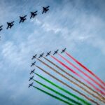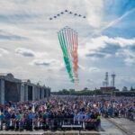 The PAN then performed a short display for the crowd with a variety of their most famous maneuvers. The routine culminated in what’s known as the Alona, where the solo-ship (Pony 10) crosses the formation’s wide smoke trails, giving life to the tricolor of the Italian flag to great emotional effect for those viewing from below.
