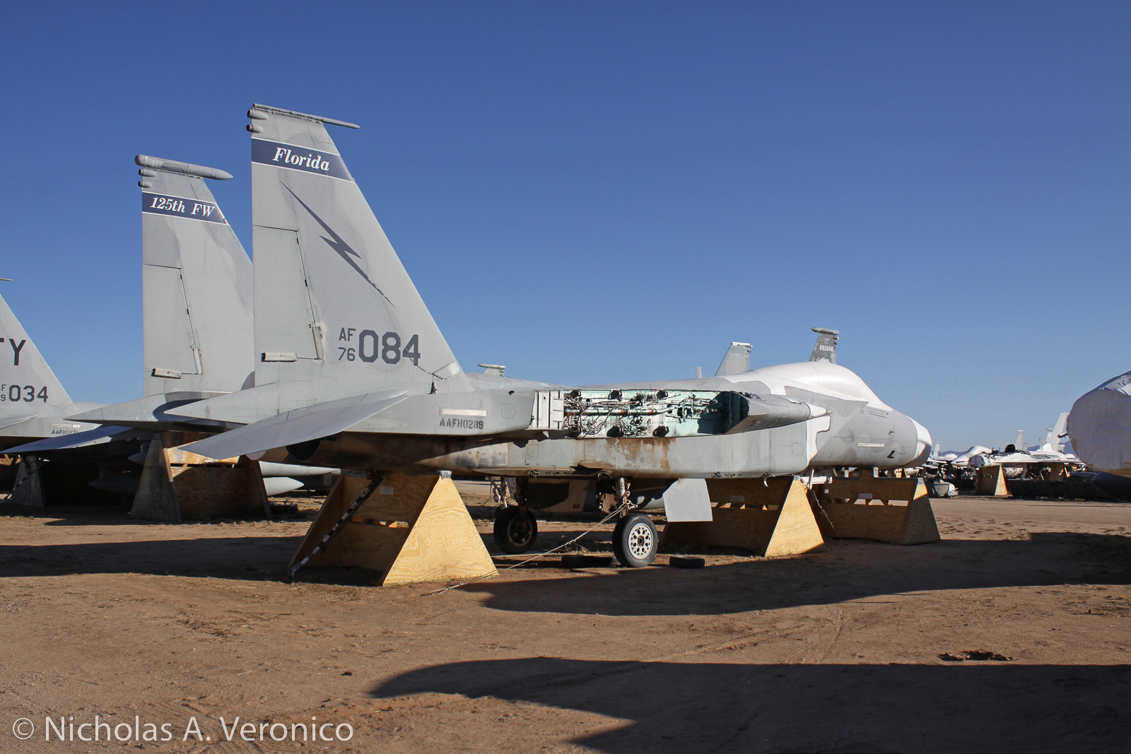 In 2007, F-15A 76-0084, now known as Celestial Eagle, was assigned to Homestead Air Reserve Base and the 125th Fighter Wing, Florida ANG. Pearson’s son, Air Force Capt. Todd Pearson, flew the aircraft on September 13, 2007, to commemorate the achievement. Three years later, on August 19, 2010, Celestial Eagle arrived at AMARG for storage. There is still hope that this aircraft can be preserved. (photo by Nicholas A. Veronico)