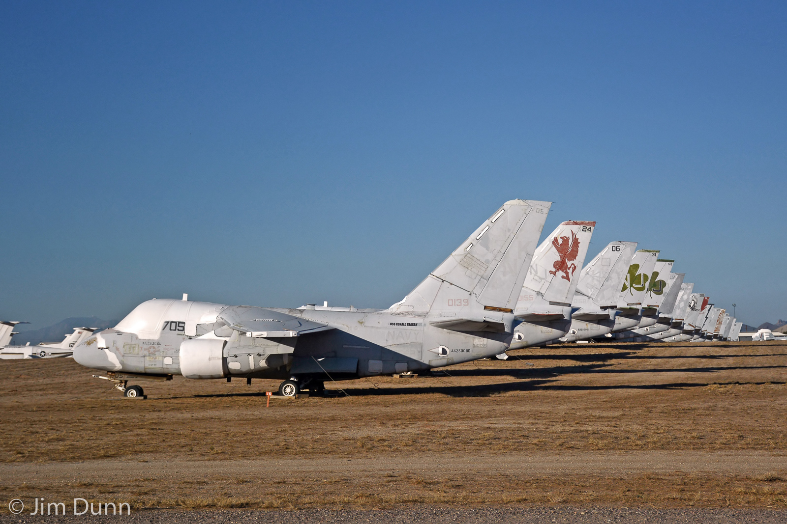 The last multi-role Lockheed S-3 Viking would conclude its Navy service and be retired to AMARG on January 8, 2016. Though once considered for the civilian role of a firefighting aircraft, there are no longer any Vikings in operation. Despite this fact 108 are still being held in storage at AMARG. At the head of this lineup is S-3B 160139 which last served with the ‘Blue Wolves’ of VS-35, and was retired on March 16, 2005. (photo by Jim Dunn)