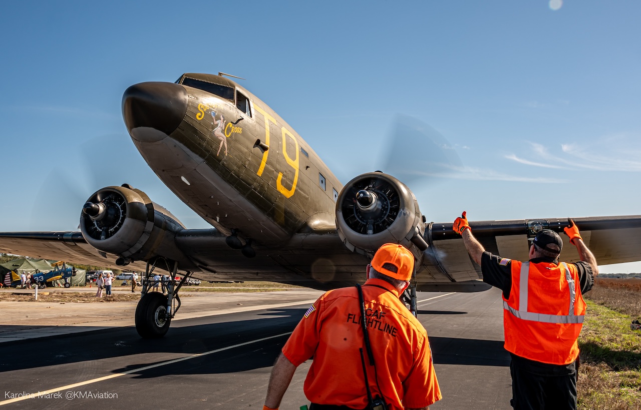 Chance Aldrich, who is an avid warbird fan, was one of the lucky visitors who got to experience a flight back in time during the exhibition. “Flying on the C-49J (Southern Cross) was an unforgettable experience,” he said. “Stepping back in time to feel the history and legacy of such an iconic aircraft. This was my eighth ride in a WWII plane. Each one has been special, but there’s something incredible about the (SC). The moment we lifted off, I could almost hear the echoes of the past, imagining the generations before me who had flown in this aircraft. The airshow that day was fantastic—full of energy, history, and a passion for aviation that you could feel in the air. It was truly an honor to be part of it.”