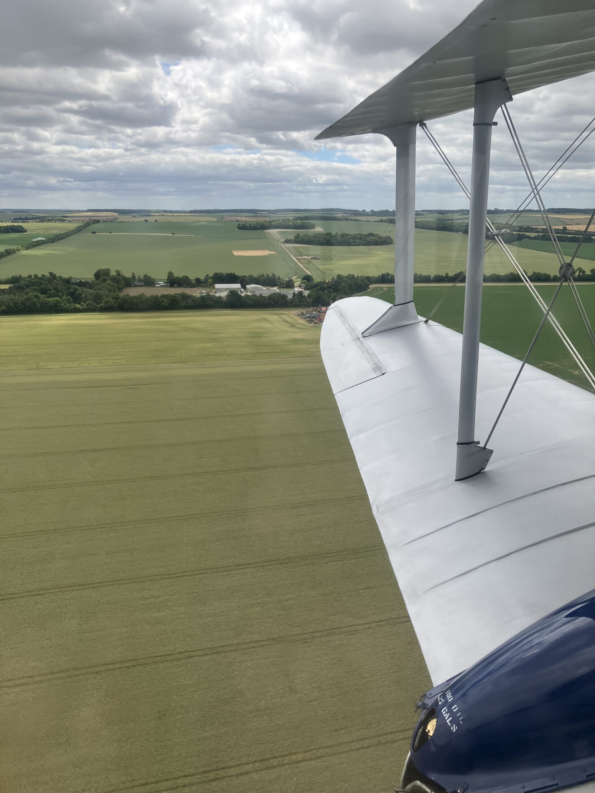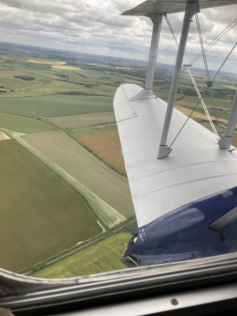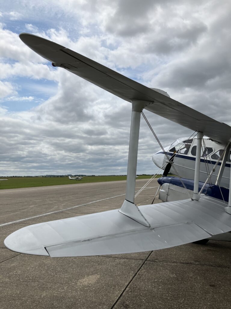 This is what art deco flying from Cambridgeshire is like. The silver Rapide named Nettie — built in 1946 and formerly a company airliner and RAF parachuting aircraft — waited at Duxford, nose defiantly up. It was truly a thing of beauty. RAF roundels on its fuselage and wings, and the serial number TX310, proudly recalled its flying history. Eight of us climbed in from the rear with the assistance of a dangling rope. It was a comfortable fit, each passenger with a window seat. It was a novelty to sit at an angle for take-off. A small escape hatch in the cabin roof above was secured by two metal pins. Sitting by the rear entry door, with daylight showing through a small gap between the seal, I felt like I was in an Agatha Christie film. Belted into our bucket seats, the pilot, in the nose cockpit, warmed the Rapide’s twin engines up. They made a deep, sonorous roar, as we took off into the July Cambridgeshire skies.