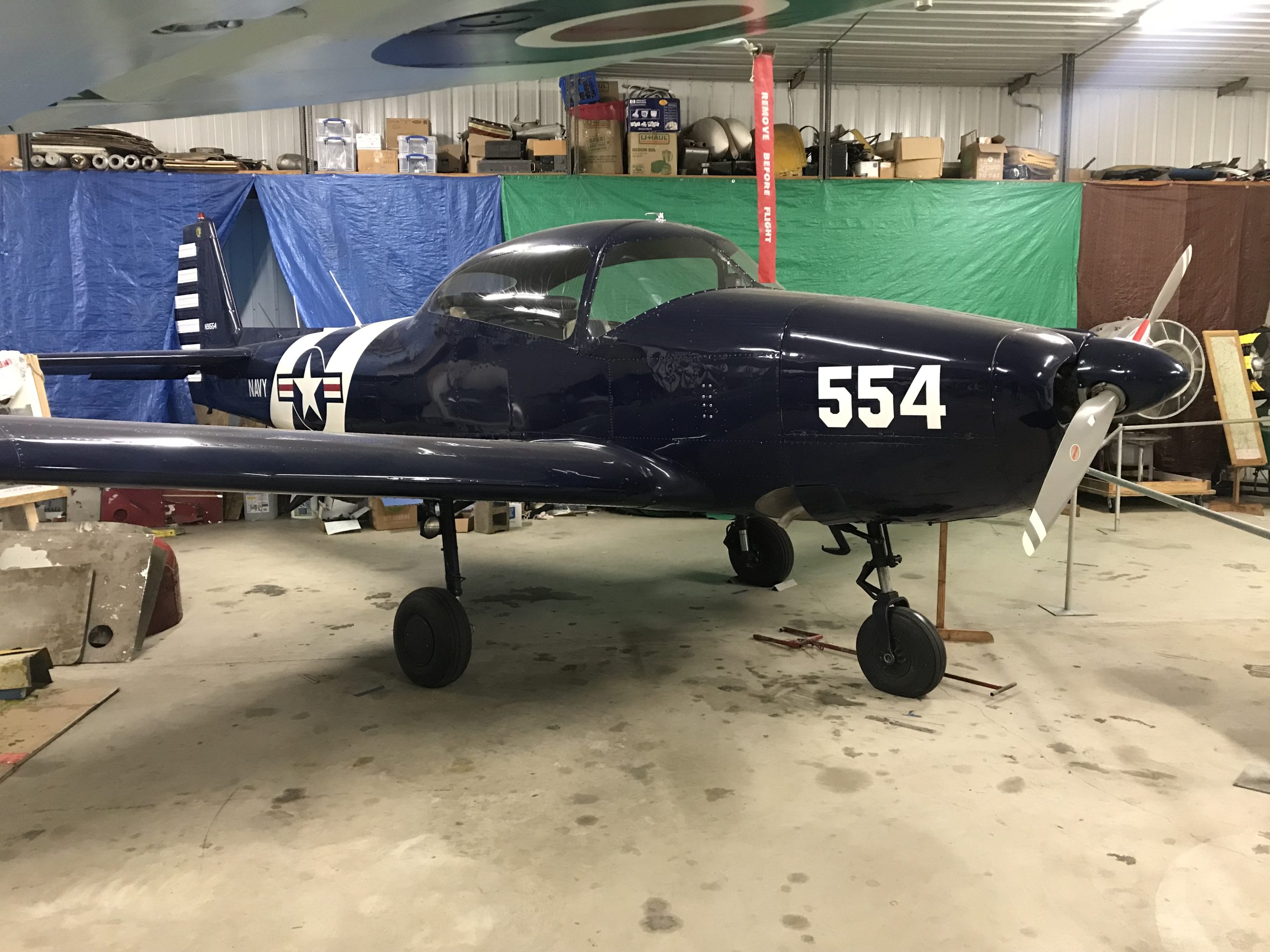 Two rare aircraft wait patiently for their turn in the restoration queue. The first is a 1943 Howard DGA-15, also known in Navy service as the NH-1 Nightingale. The second is a 1945 Percival Proctor Mk. 5, believed to be the last surviving example in the western hemisphere. Rescued from a pole barn in Lowell, Indiana, in 2020, it is displayed in its authentic “barn find” condition. Rounding out the flying fleet are a 1946 North American Navion, painted in Navy blue and based at Clow for more than 25 years under caretaker Howard Bohl, and a 1946 Ercoupe 415-C, an early fabric-wing version with no rudder pedals, maintained by Daniel Christine.