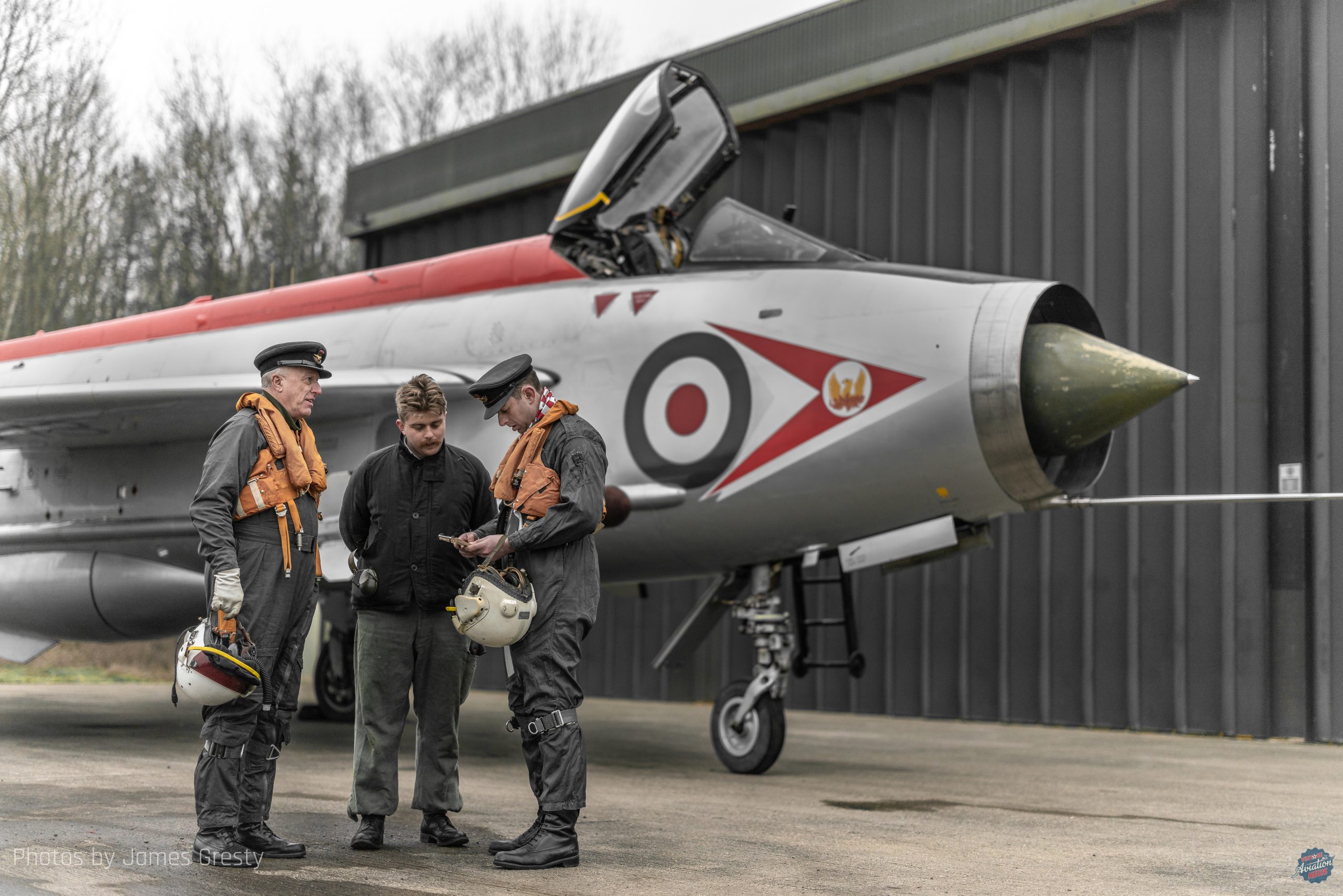 On January 18, 2025, the LPG and COAP once again collaborated for a Cold War-era re-enactment photoshoot. The atmosphere at Bruntingthorpe was electric as the hangar doors opened, revealing the gleaming Avon engines of the Lightnings. Re-enactors in period costumes added to the authenticity of the scene, as crews prepped the jets and pilots scrambled to their aircraft. The event was a tribute to the fast-paced, high-stakes world of Cold War aviation, with photographers working together to capture the perfect shot. Afterward, the images were processed to preserve the history and spirit of the era, ensuring that these Cold War warriors will not be forgotten.
