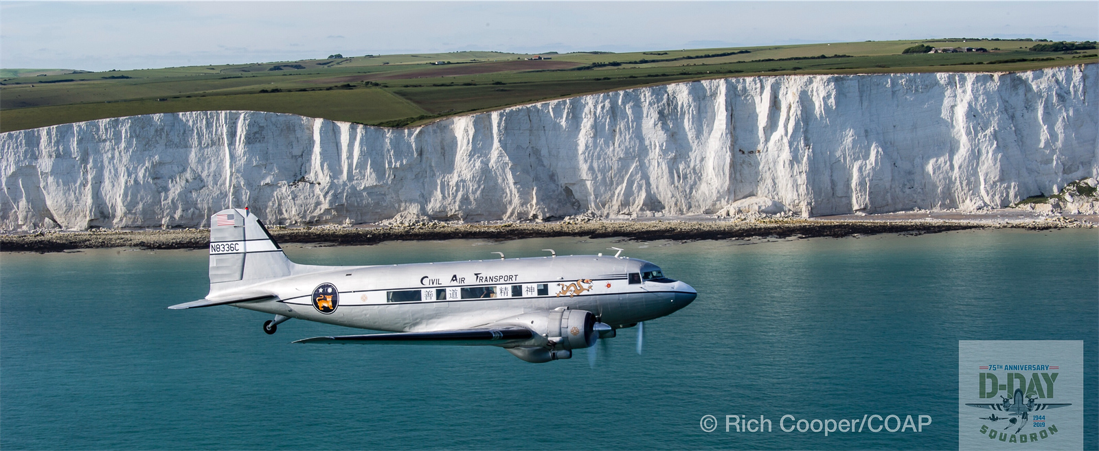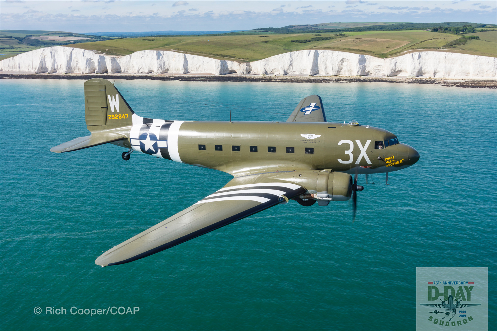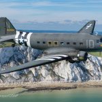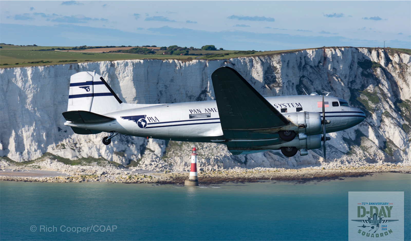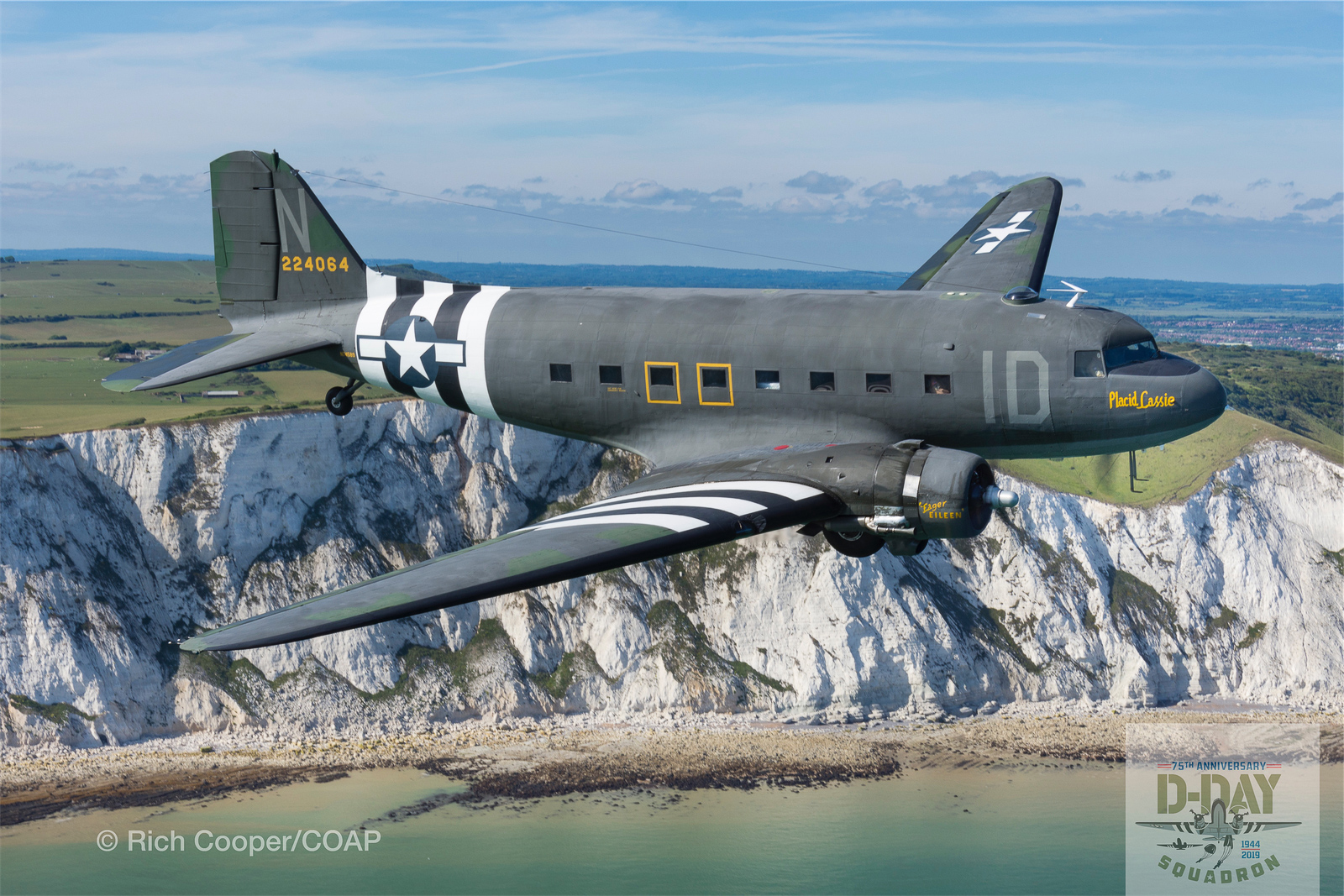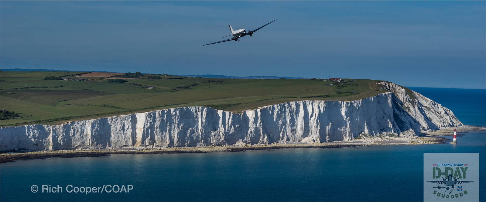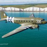 The 75th anniversary celebrations for Operation Overlord, better known now as D-Day, reached a crescendo today with the massed fly-over along the beachheads and landing zones of Normandy, France where the June 6th, 1944 invasion took place. A fleet of WWII transport aircraft, predominantly Douglas C-47s (along with Dakotas a DC-3 and a C-53) and aircraft of the modern military forces of both France and the United States formed the aerial armada, which also paid their respects to the dead, with a trip past WWII cemeteries along the route. A smaller ceremony also took place in Portsmouth, England, home of the Royal Navy, and one of the primary locations from which more than a thousand British and American naval vessels set forth on June 5th, 1944 for Operation Neptune, the marine component for Overlord, the assault on Nazi-occupied France. More than thirty Douglas C-47s/Dakotas were scheduled to take part in the Daks Over Normandy flyovers, with fifteen of them being part of the D-Day Squadron which we have been following along their epic journey from across the United States to Europe this past three weeks. While we do not have many still images from todays flypast to share at this point, we do have some extraordinary shots from earlier in the week taken by the world-class, British photographer Rich Cooper.