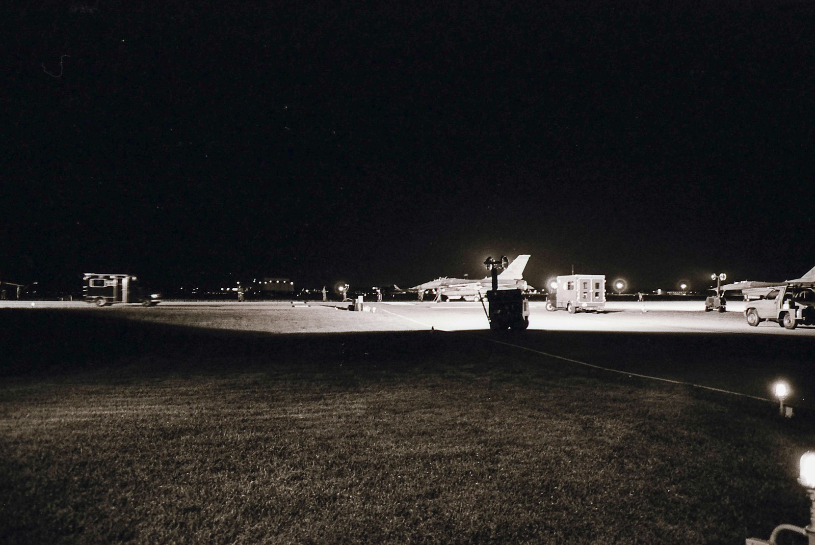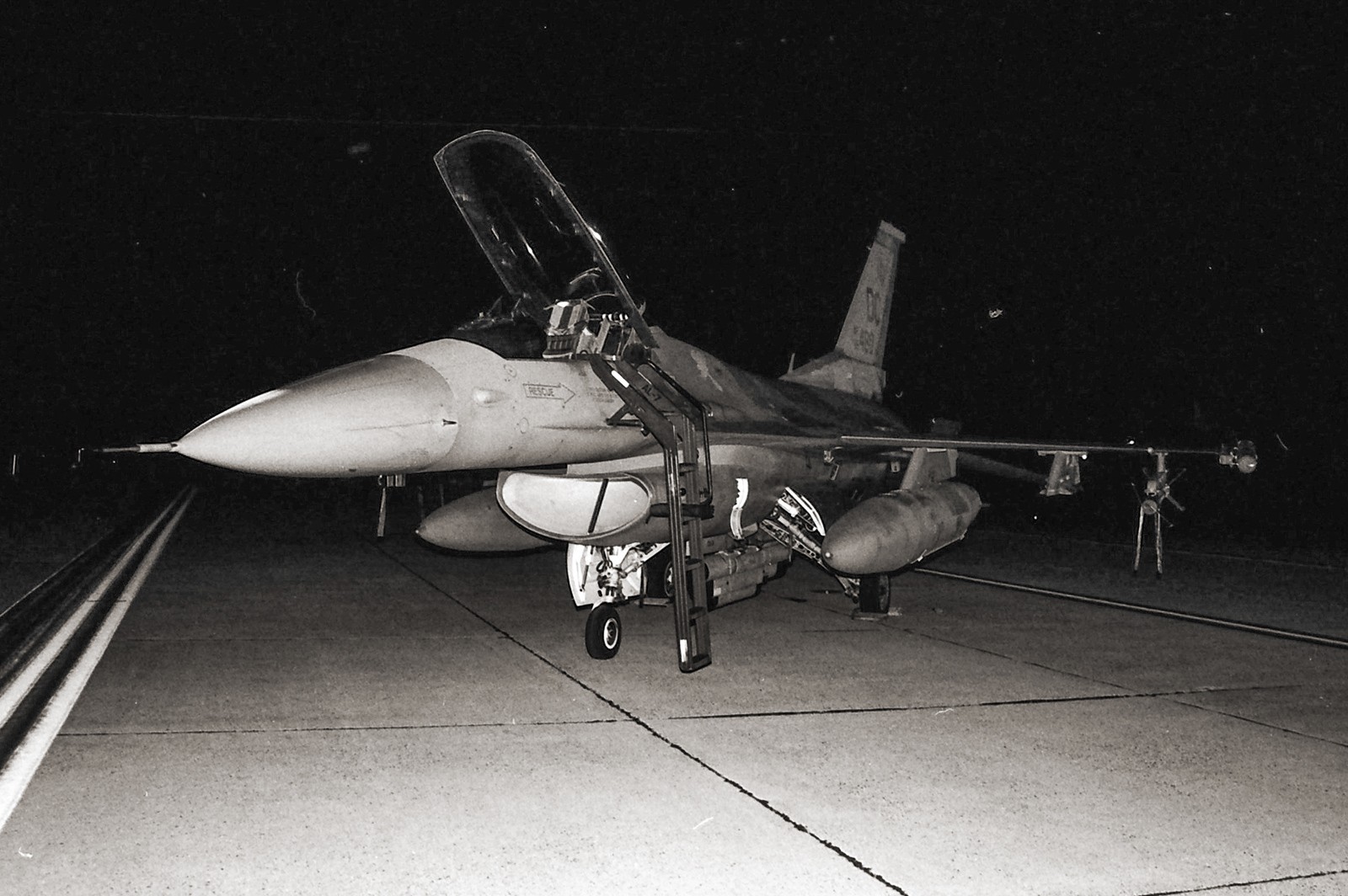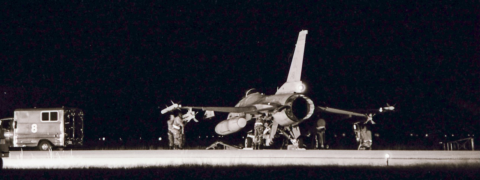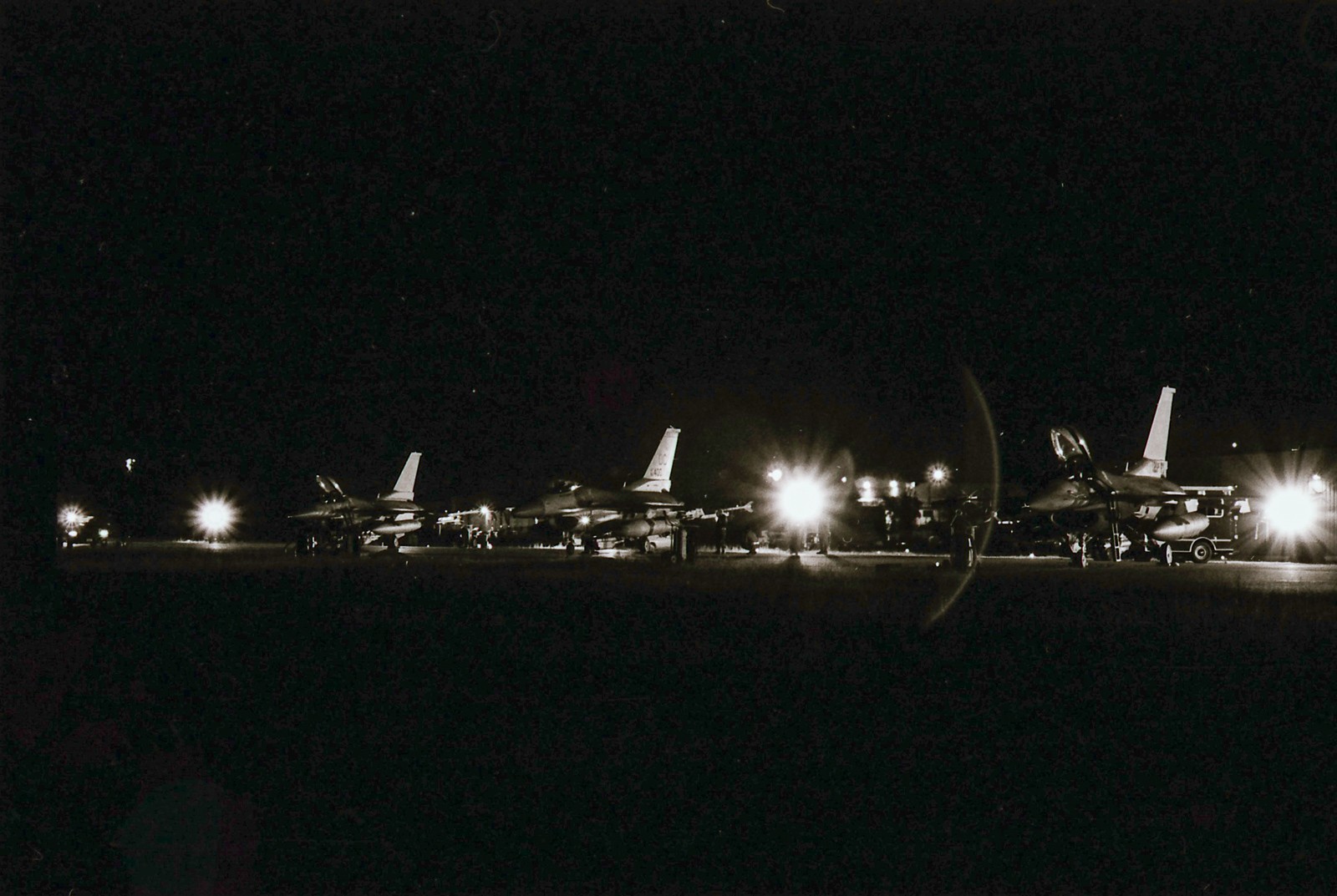 Master Sergeant Michael Porter, a former bomb loader that had recently taken a position in the 113th Quality Assurance office, recalls seeing the tankers too and added that he could hear the F-16s changing power settings to maintain formation with the tanker. During the night Porter snapped fourteen surreal black & white photos of maintenance and weapons personnel preparing F-16s for a 6-hour midnight DCA mission. These photos, many of which are published here for the very first time, are the only known photos that document combat operations at Andrews AFB on September 11, 2001.