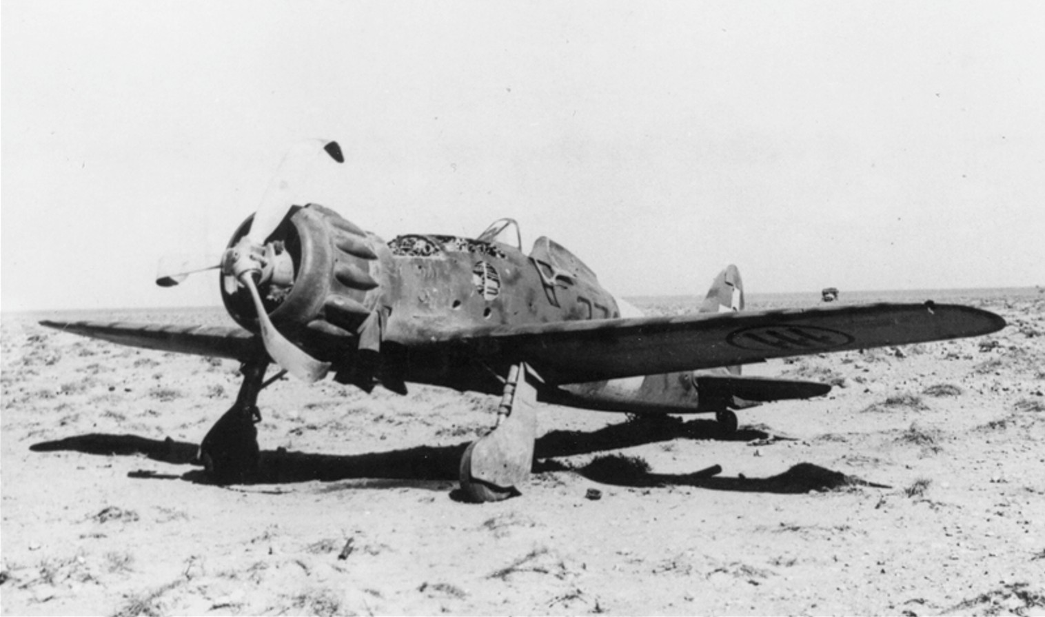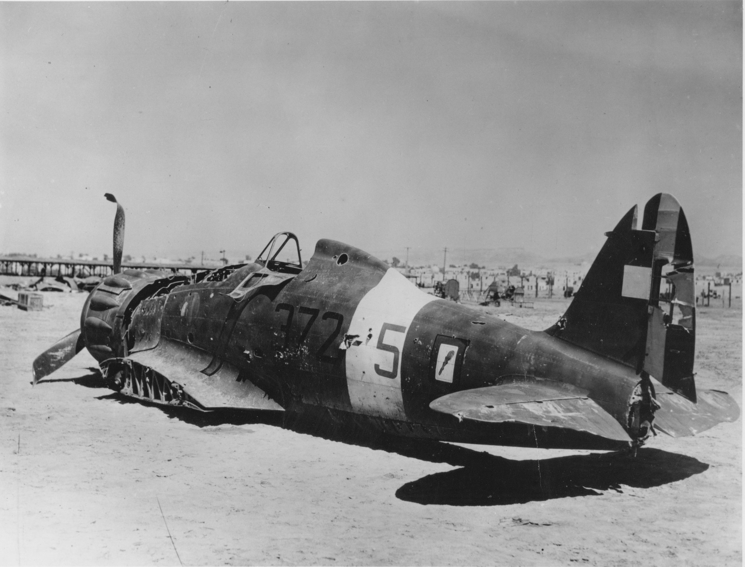 On November 20, 1942, after their decisive victory against German field marshal Erwin Rommel’s Afrika Korps at the Battle of El-Alamein, the British Eighth Army under Bernard Montgomery captured Benghazi and its outlying airfields from the Italians and the Germans. Among the multitude of abandoned German and Italian equipment was Macchi C.200 MM.8146, discovered at the K3 Airfield. Despite officially being transferred to the 165th Squadron, which would have seen the fuselage code be repainted from ‘372’ to ‘165’, there had been no time for the Italian ground crews to make this change before Benghazi was overrun, and the aircraft was captured by British forces. In examining further documentation with the author, Gregory Alegi now believes that 372-5 was not MM.8146, but rather another C.200 built by Breda, MM.8327, which was also part of the 372nd Squadron, but was later transferred to the 92nd Squadron before being damaged in an emergency landing 30 kilometers southeast of the Arch of the Philaeni, an archway built by the Fascist regime in 1937 and nicknamed the “Marble Arch” by Allied soldiers. Whatever the identity of the aircraft, the RAF had already captured other Saettas during the North African campaign, but since there is no record that this C.200 Saetta was ever issued with an RAF serial number, it is possible that the aircraft was deemed too damaged to be economical to be restored to flyable condition when it was captured by the British.
