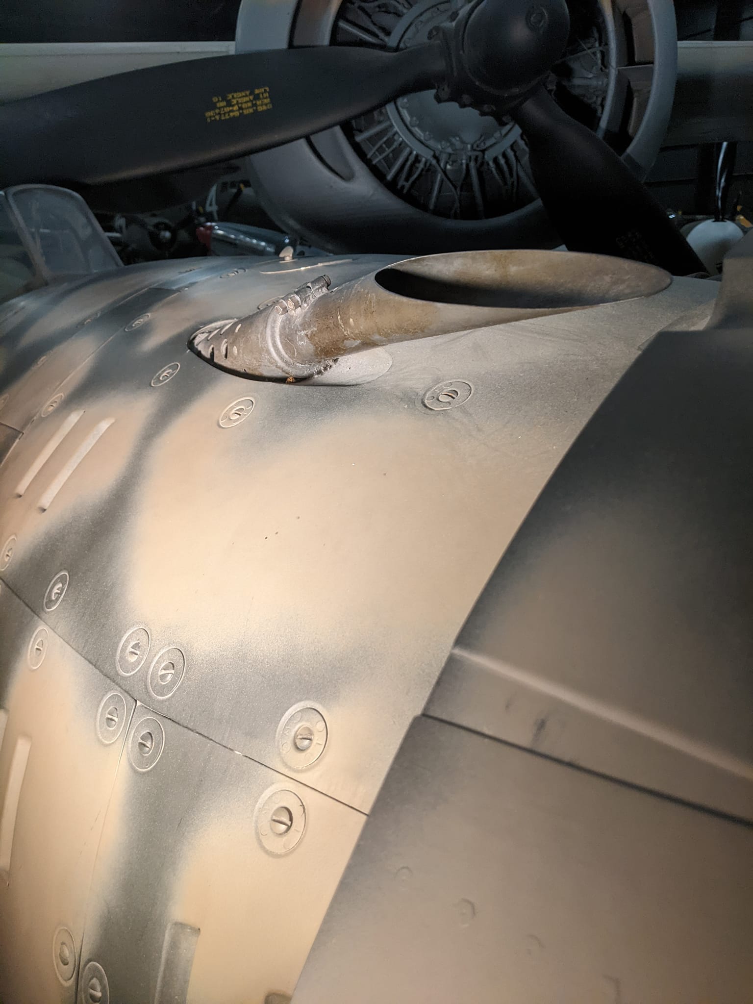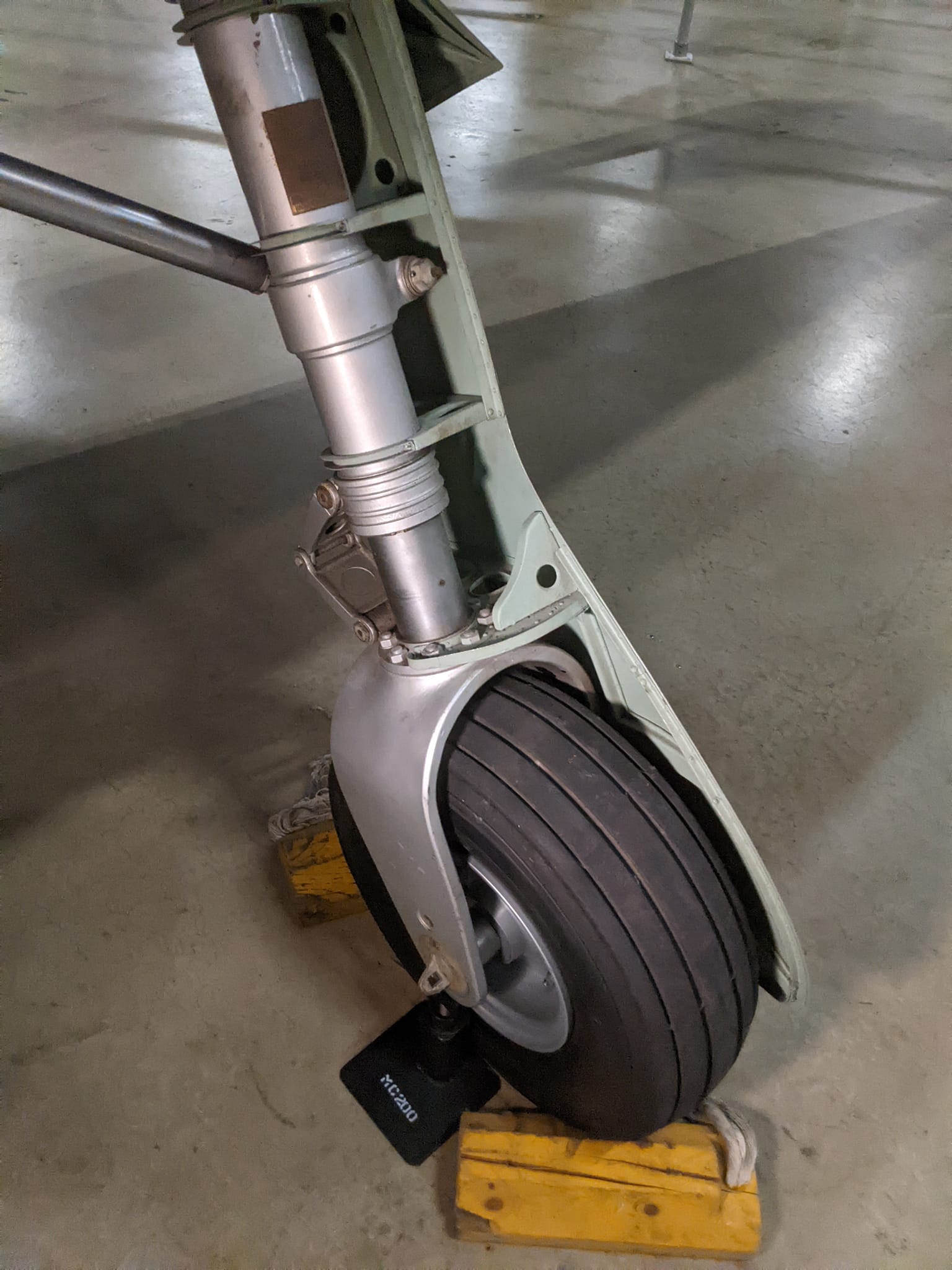 Even with the expertise of the volunteers and the similarities in the designs of the Macchi C.200 Saetta and the Macchi C.205 Veltro, the Saetta’s restoration would prove to be a challenge. Many parts were missing entirely, and many of those that remained were badly corroded. Up to 40% of the wing structure had to be replaced, and most of the lower fuselage had to be completely replaced due to intergranular corrosion in areas where water had collected when it was being kept outdoors in the New England weather. The focus of the restoration, though, was to restore as much of the original structure as possible and replace parts only when necessary. On the wings, the similarities in the internal structure of the wings of the Veltro provided a reference for the restoration of the Saetta’s wings; some sheet metal skins were replaced and flush-riveted into place, while original components that could be reused were cleaned, had surface-level corrosion treated, had primer applied, and were refitted. For the fuselage, the lower portions had new, longerons and formers fabricated and installed, with sheet metal skin riveted onto the structure. Meanwhile, the organization Gruppo Amici Velivoli Storici (GAVS; Friends of Historical Aircraft) helped the team restore what original internal systems on the airframe remained, while taking down and acquiring replacements for missing items for the barren cockpit, such as flight instruments and a throttle quadrant to be refitted into the airplane. On the aircraft’s landing gear, new trunnions were refabricated, while the original oleos and axles were restored. GAVS found a tail wheel assembly, main gear wheels and tires, and assisted in fabricating gear doors from original factory drawings and installing the gear retraction mechanism. Every original component on the aircraft was disassembled, thoroughly cleaned, treated for corrosion, and refinished for reassembly. For the vertical and horizontal stabilizers of the Saetta, some of the internal structure was retained, but the stabilizers mounted to the aircraft’s tail required all-new sheet metal to be applied, and the rudder and elevators had to be refabricated from scratch.
