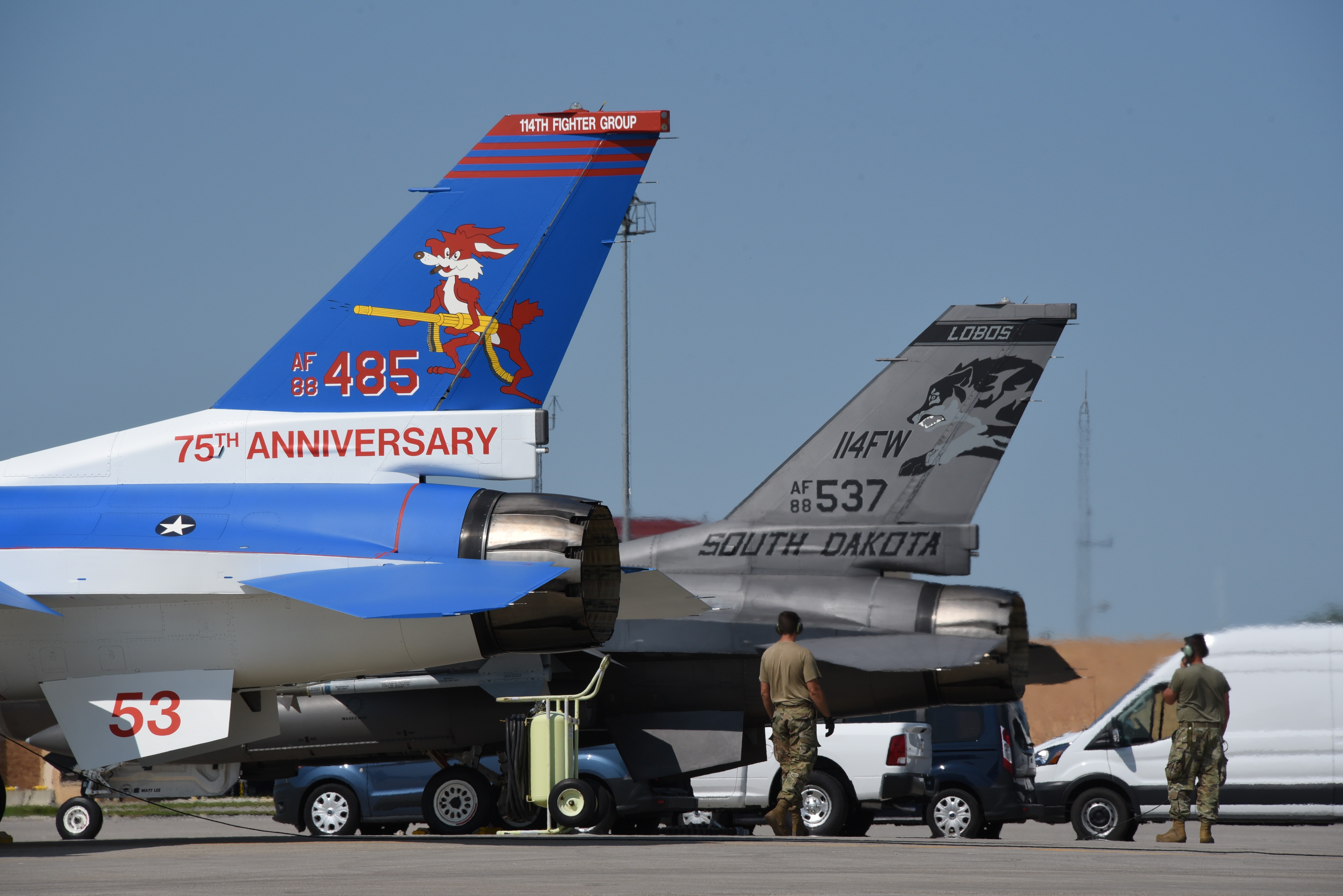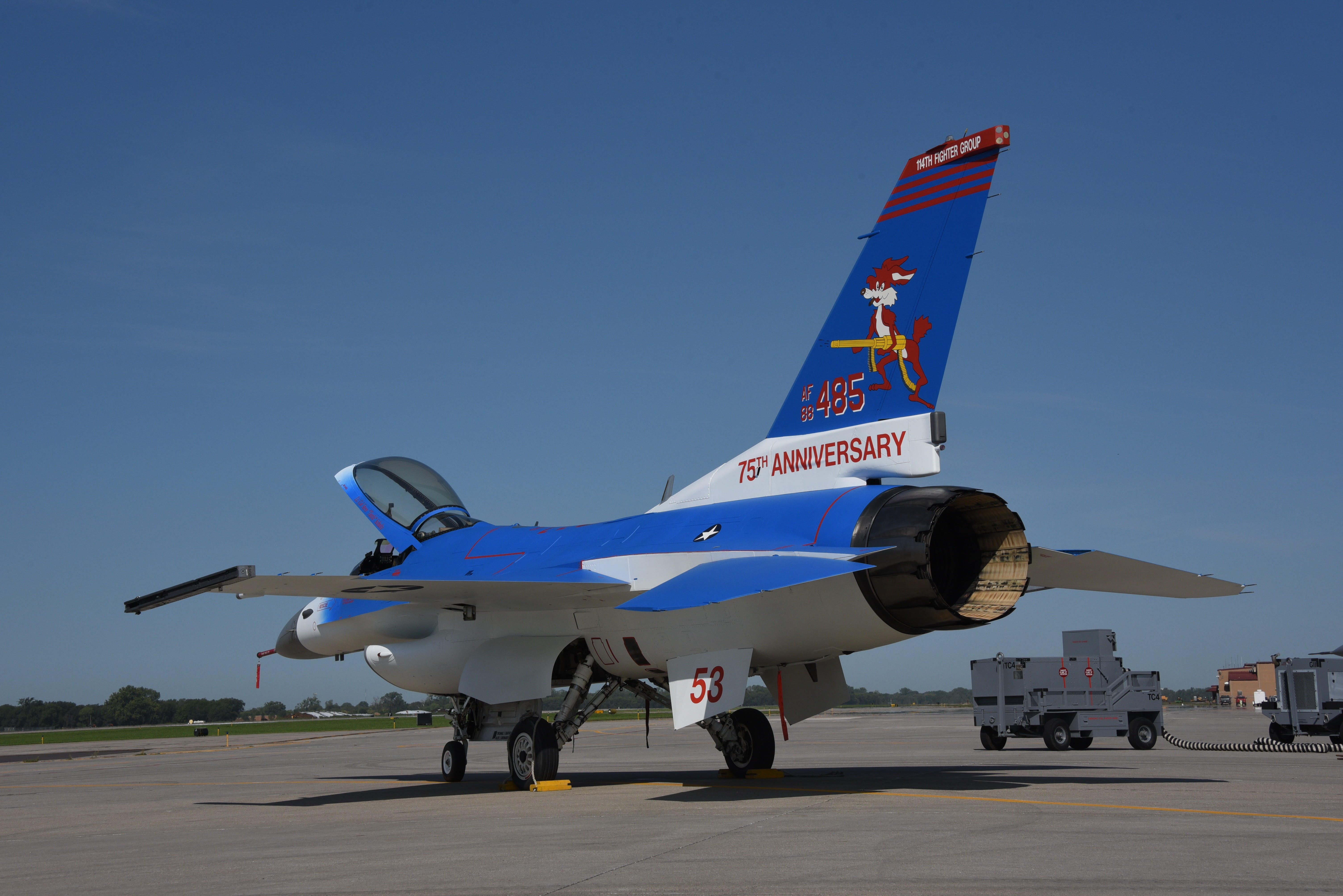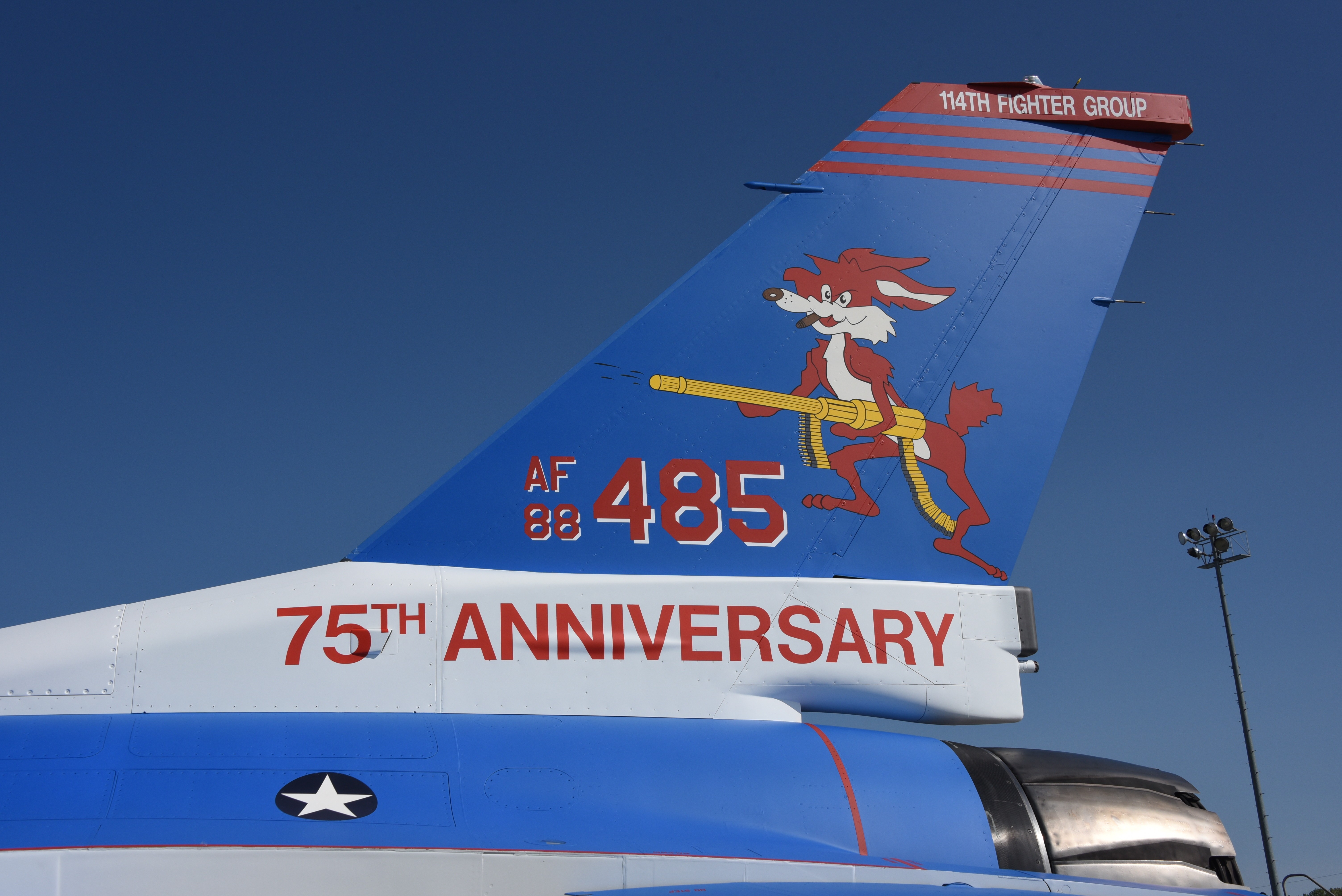 First formed in 1946, the SD ANG recently commissioned special markings for one of their F-16Cs. Unlike most such liveries, this example plays a dual role; it commemorates the unit’s 75th anniversary while also paying tribute to its most famous member, Joe Foss. The light blue and white scheme, while a little off in hue, is intended to emulate the colors worn by the Grumman F4F Wildcats which Foss flew to such great effect in the Guadalcanal Campaign.