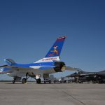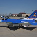 But despite his many achievements as a civilian, it is for his prowess in the air that Foss is remembered by many. His ties to South Dakota and the Air National Guard’s 175th FS remain strong. Through the decades, the 175th FS, which presently operates from Joe Foss Field in Sioux Falls, South Dakota, has flown the F-51D Mustang, F-94 Starfire, F-89 Scorpion, F-102 Delta Dagger, F-100 Super Sabre, and, penultimately, the A-7 Corsair II. They have been flying their most recent steed, the F-16 Fighting Falcon, since 1991. And it is one of the latter aircraft types which now wears a unique new livery…
