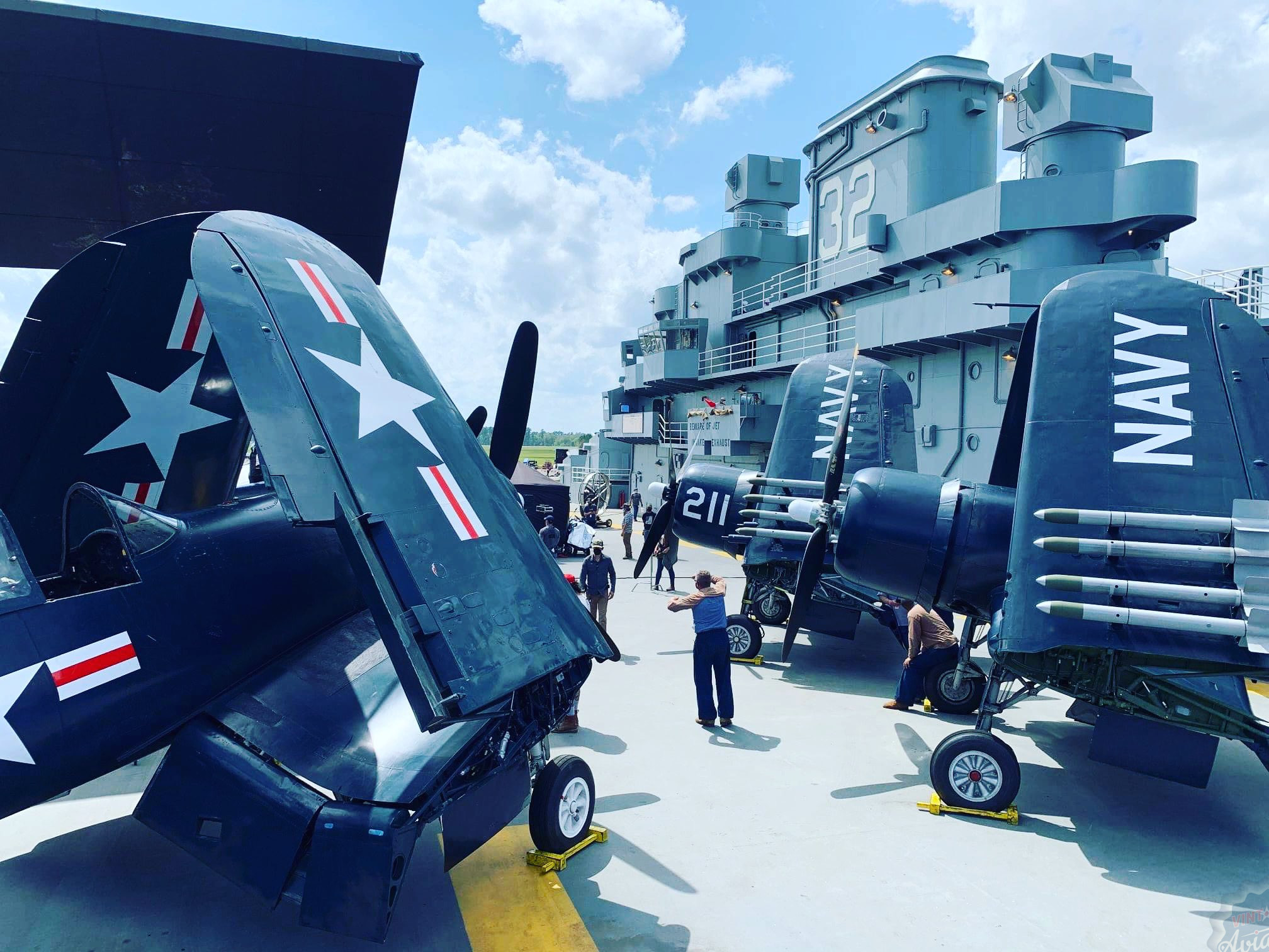 The movie will feature a significant number of vintage combat aircraft from the Korean War period, including at least four Corsairs, and the production company has gone to significant lengths to both ensure historical accuracy and hire the best aerial performers and filmmakers in the business. Erickson Aircraft Collection in Madras, Oregon, took part in the flying for the winter sequences in the mountainous terrain around Pasco, Washington, and along the Snake River nearby. Erickson supplied its F4U-7 (dressed as Ens Brown’s F4U-4) and AD-4 Skyraider. Dan Friedkin’s F4U-4 and F8F also took part in the aerial scenes out West. The CAF Airbase Georgia‘s FG-1D Corsair was also repainted to represent one of the picture planes for more distant scenes in the Savannah area as well. Planes of Fame supplied their F4U-1 Corsair painted as an F4U-4, MiG-15, and F8F for filming as well.