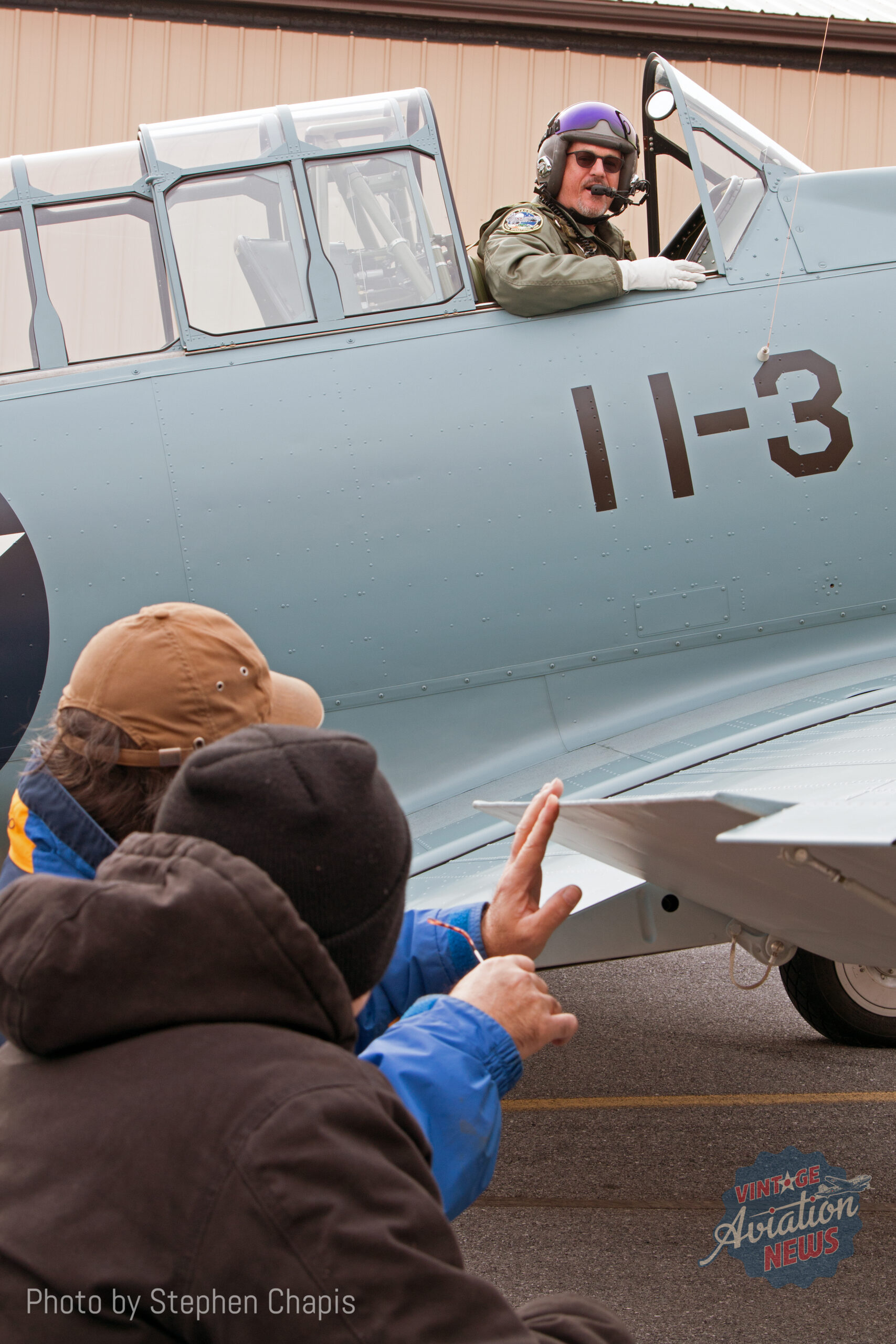 In January 2017, when Mark and the late-Joe Denest and their team at the Smoketown, Pennsylvania-based MD Aero Restorations completed the restoration of Fagen Fighters’ 1943 SNJ-4 in January 2017, Stephen Chapis was there to document the early test flights and get first-hand accounts of those flights from John Glen Fuentes and Ed Shipley.