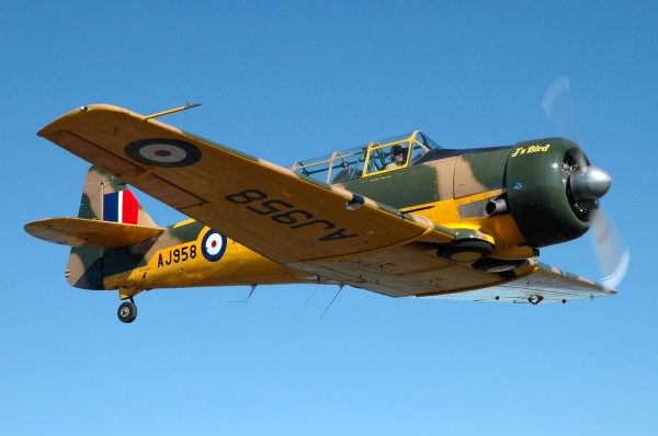 Skipper owns a beautiful “Harvard”, the RAF”s version of the T-6 Texan. His model was first ordered by the British Empire in 1938 and should not be confused with the Wirraway or Yale, which are part of the same family. Once North American Aviation produced a successful airframe, the US military caught on and purchased the aircraft as the T-6 Texan for the Air Corps and the SNJ for the US Navy. Production stopped for good in 1954 with 15,649 Texans and Harvards produced. There are about 600 left flying today throughout the world.