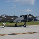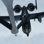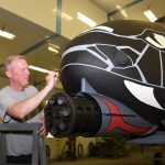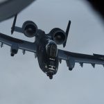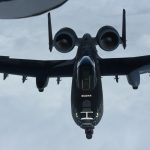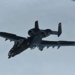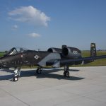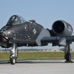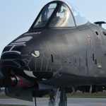 The new livery is a mixture of black and dark grey with colors breaking along standard A-10 paint lines on the wings, engines and fuselage. The aircraft’s nose is wreathed with a distinctive 122nd FW green-eyed snake, complete with fangs, surrounding the aircraft’s seven-barrel 30mm autocannon. One side of the aircraft has a 122nd FW fin flash with the text, “Fort Wayne” embossed in yellow over Indiana state-flag-blue background, while the opposite fin shows a Racers checkered flag with the text “Terre Haute” of the disbanded 181st Fighter Wing, now the 181st Intelligence Wing.