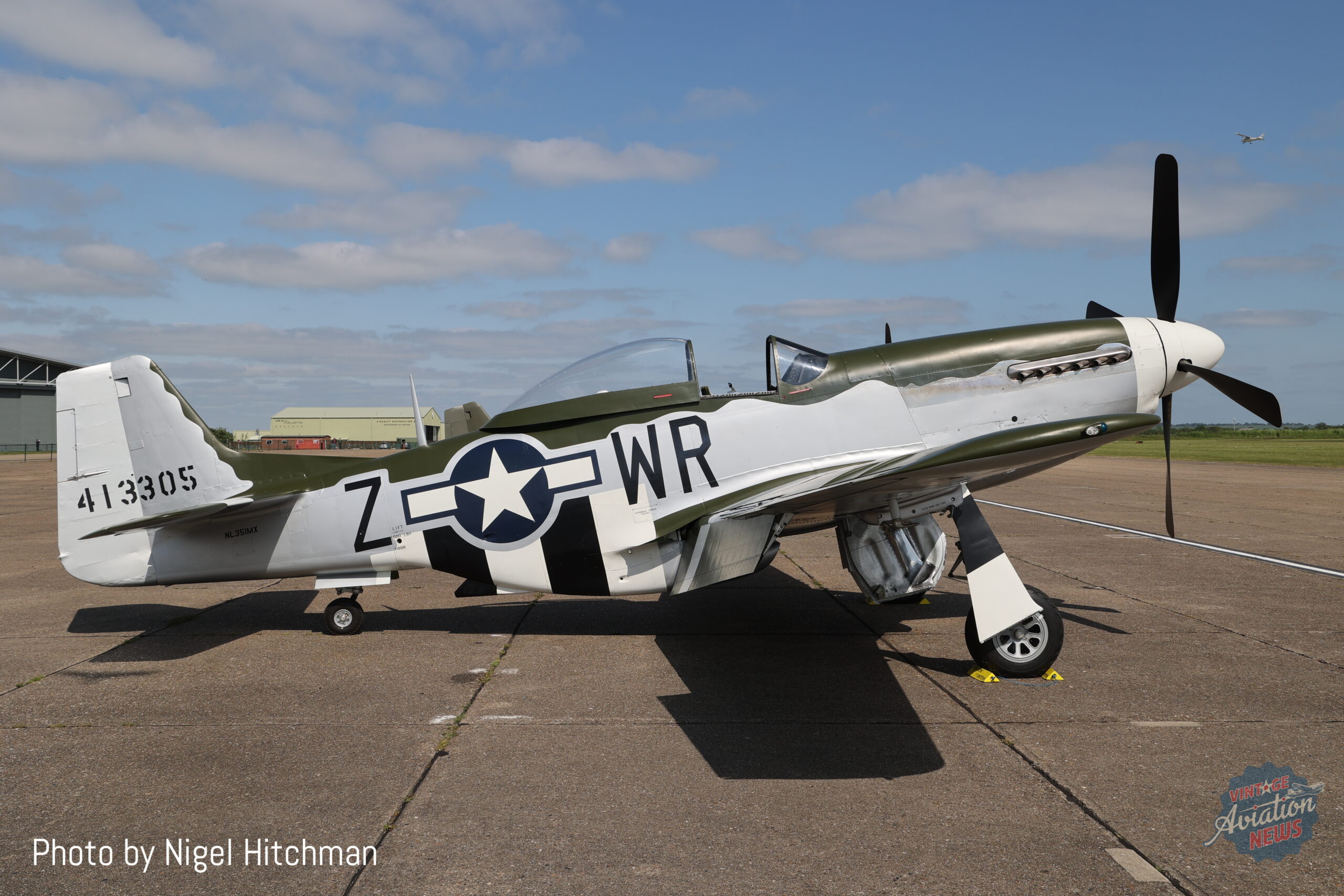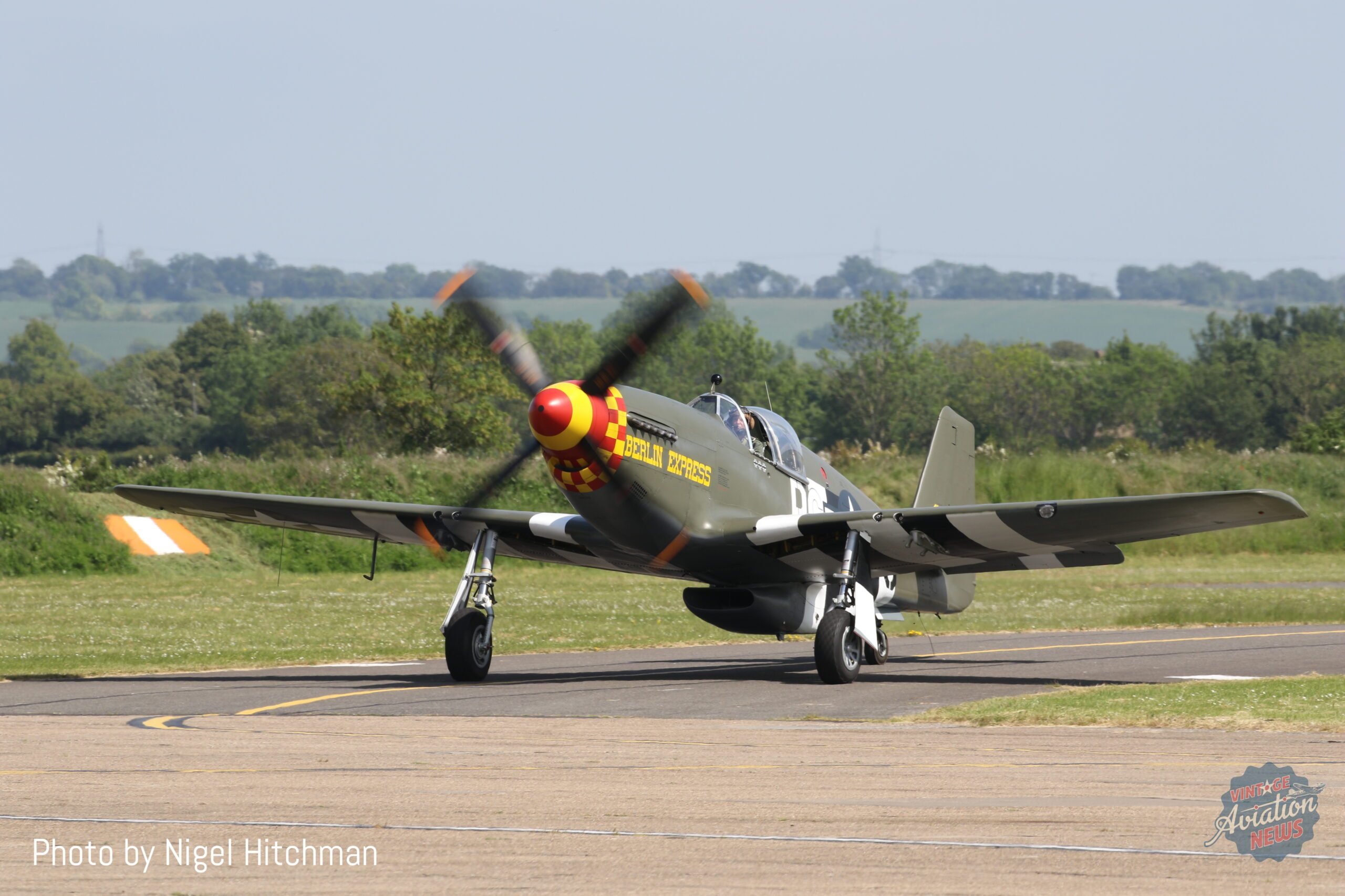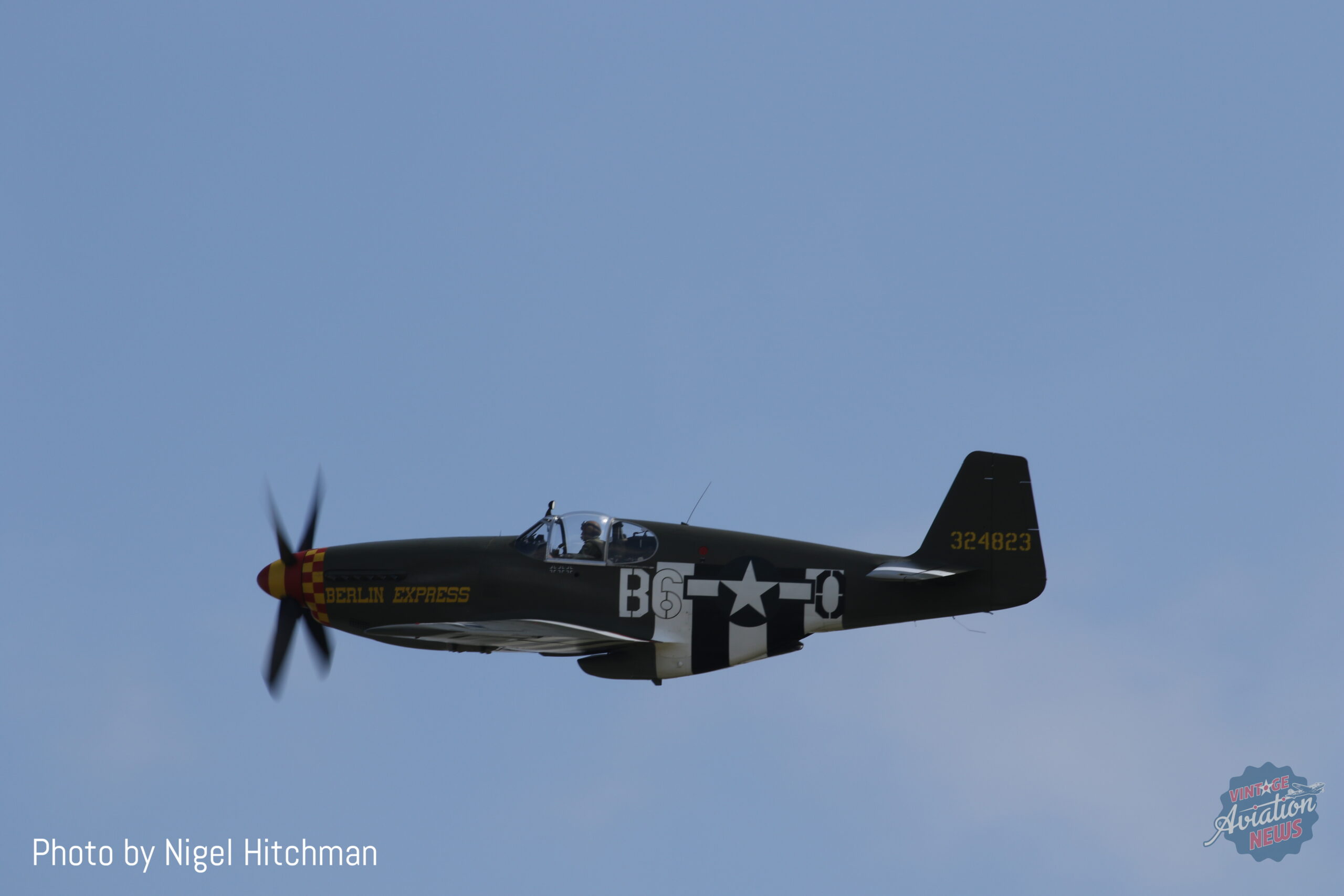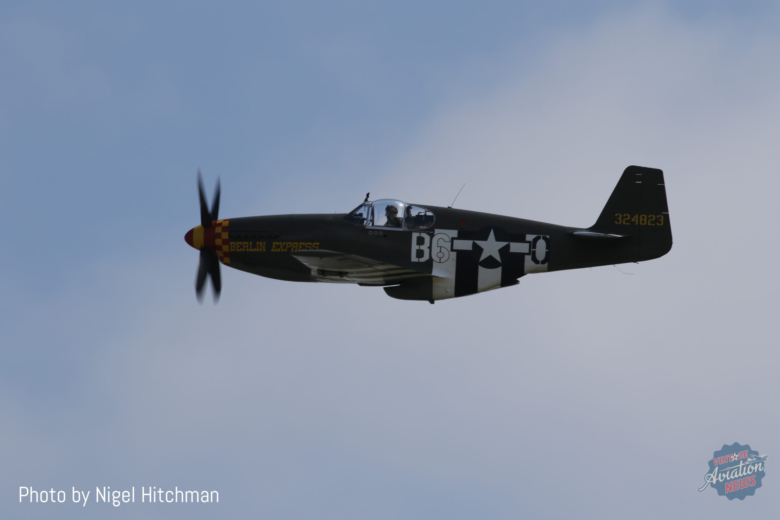 Meanwhile, Pete Kynsey had flown Berlin Express (43-24837/N515ZB). This P-51B had flown across the Atlantic in July 2017 (with Lee Lauderback at the controls) especially for that year’s Flying Legends event. However, during a high speed pass at the air show, the plexiglas in the canopy’s Malcolm hood shattered! Despite the obvious difficulties involved, the Mustang’s pilot, Nick Grey, had performed a successful emergency landing without further incident. Oddly, a second canopy also failed during a test flight, but the third proved to be sufficiently durable. The additional delays involved with fixing the canopy did cause Berlin Express to mis Flying Legends 2018 though, and just before Flying Legends 2019, both of these Mustangs departed for other climes – eventually ending up in Switzerland, where they remained for about a year. Indeed, the recent foray from Duxford is believed to be their first since returning from Switzerland, so we look forwards to seeing Berlin Express at Church Fenton for Flying Legends 2023!