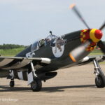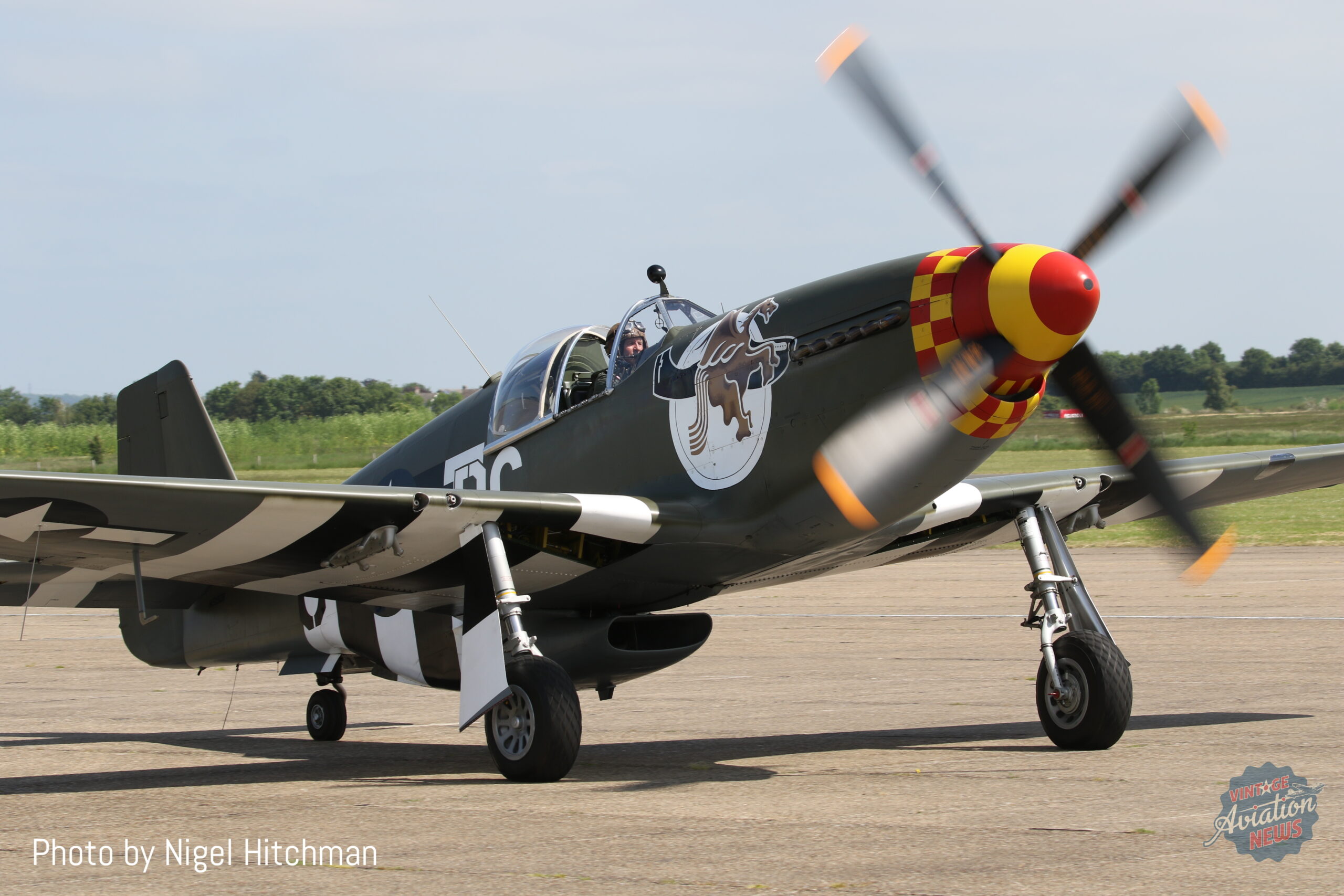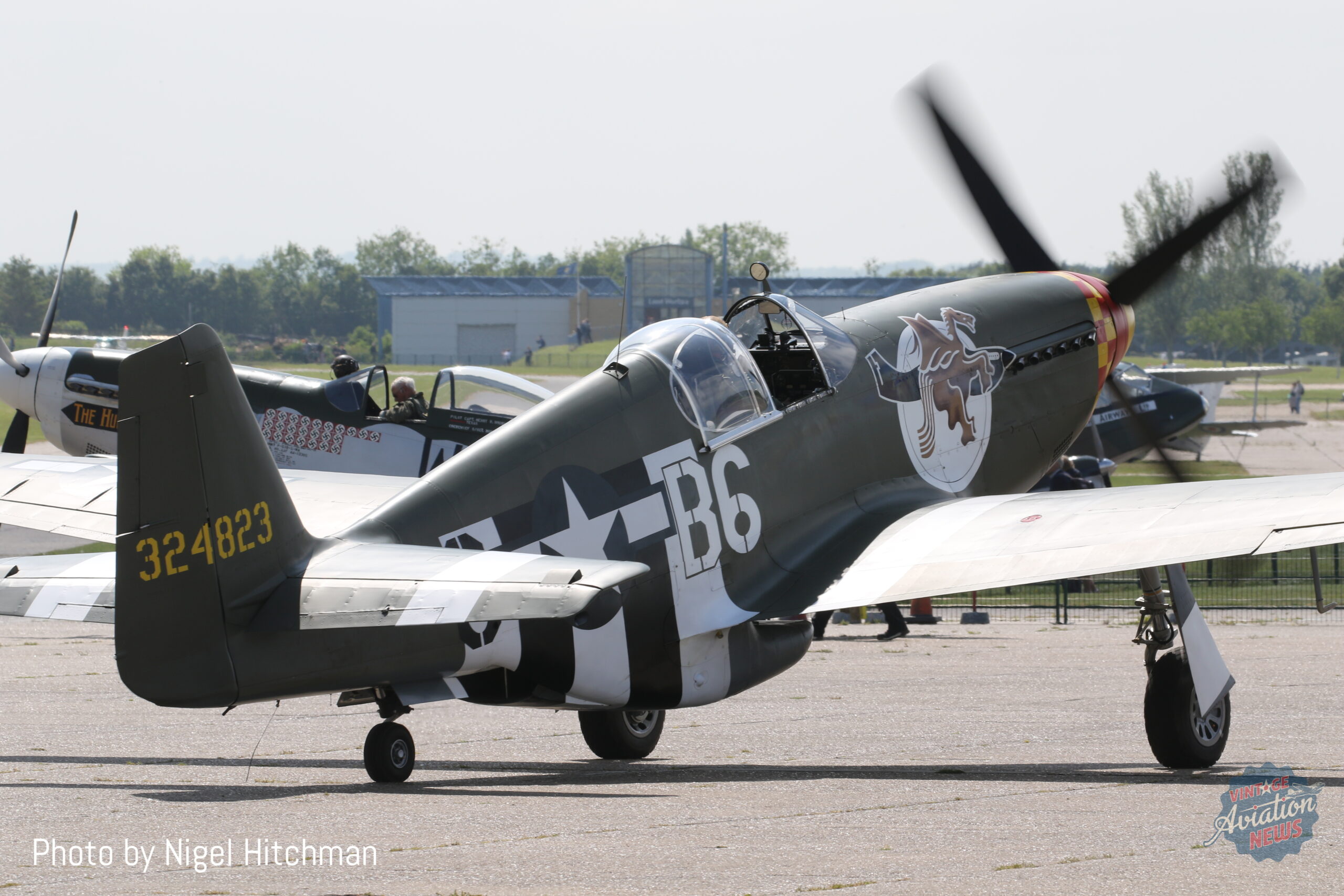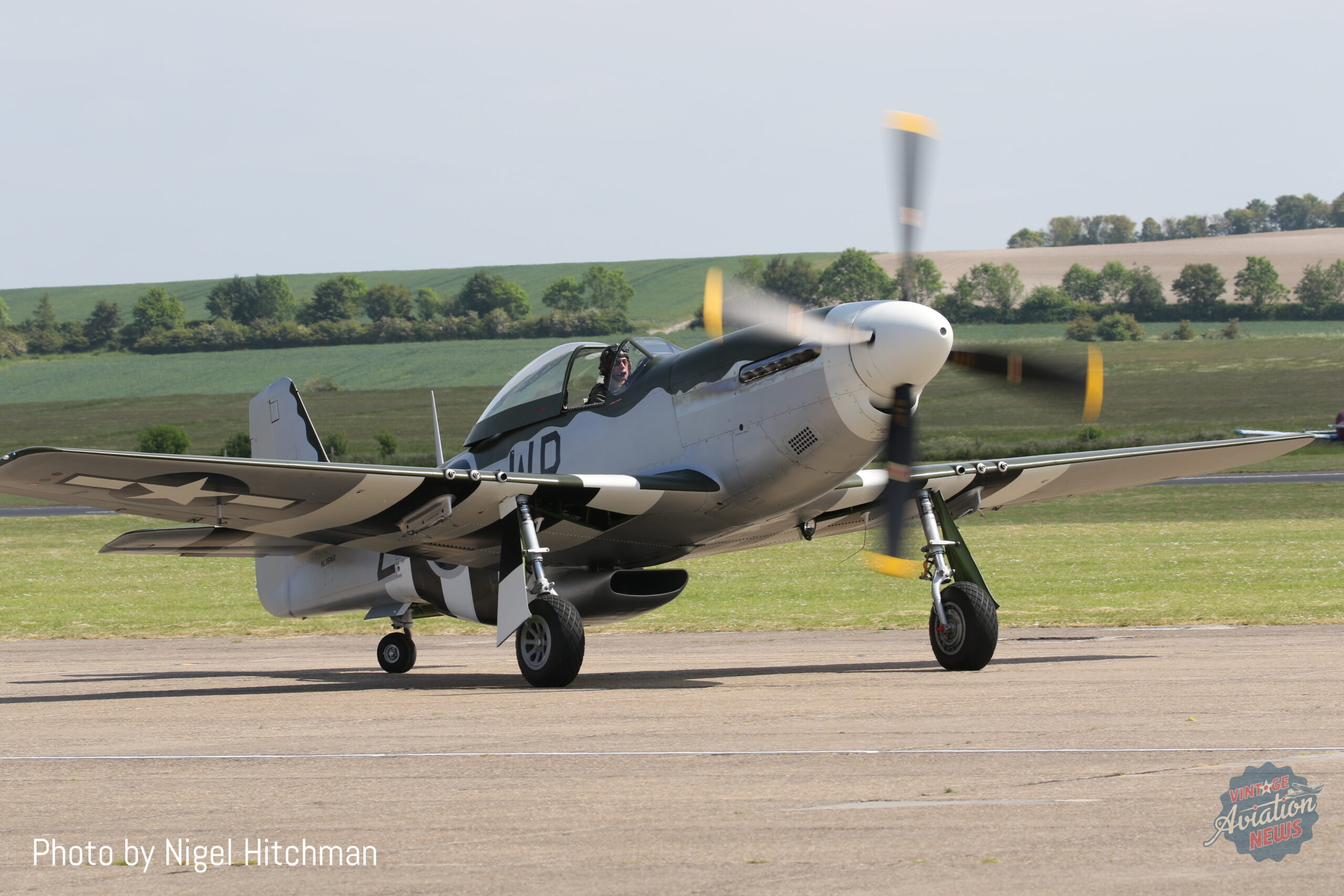 Meanwhile, Pete Kynsey had flown Berlin Express (43-24837/N515ZB). This P-51B had flown across the Atlantic in July 2017 (with Lee Lauderback at the controls) especially for that year’s Flying Legends event. However, during a high speed pass at the air show, the plexiglas in the canopy’s Malcolm hood shattered! Despite the obvious difficulties involved, the Mustang’s pilot, Nick Grey, had performed a successful emergency landing without further incident. Oddly, a second canopy also failed during a test flight, but the third proved to be sufficiently durable. The additional delays involved with fixing the canopy did cause Berlin Express to mis Flying Legends 2018 though, and just before Flying Legends 2019, both of these Mustangs departed for other climes – eventually ending up in Switzerland, where they remained for about a year. Indeed, the recent foray from Duxford is believed to be their first since returning from Switzerland, so we look forwards to seeing Berlin Express at Church Fenton for Flying Legends 2023!