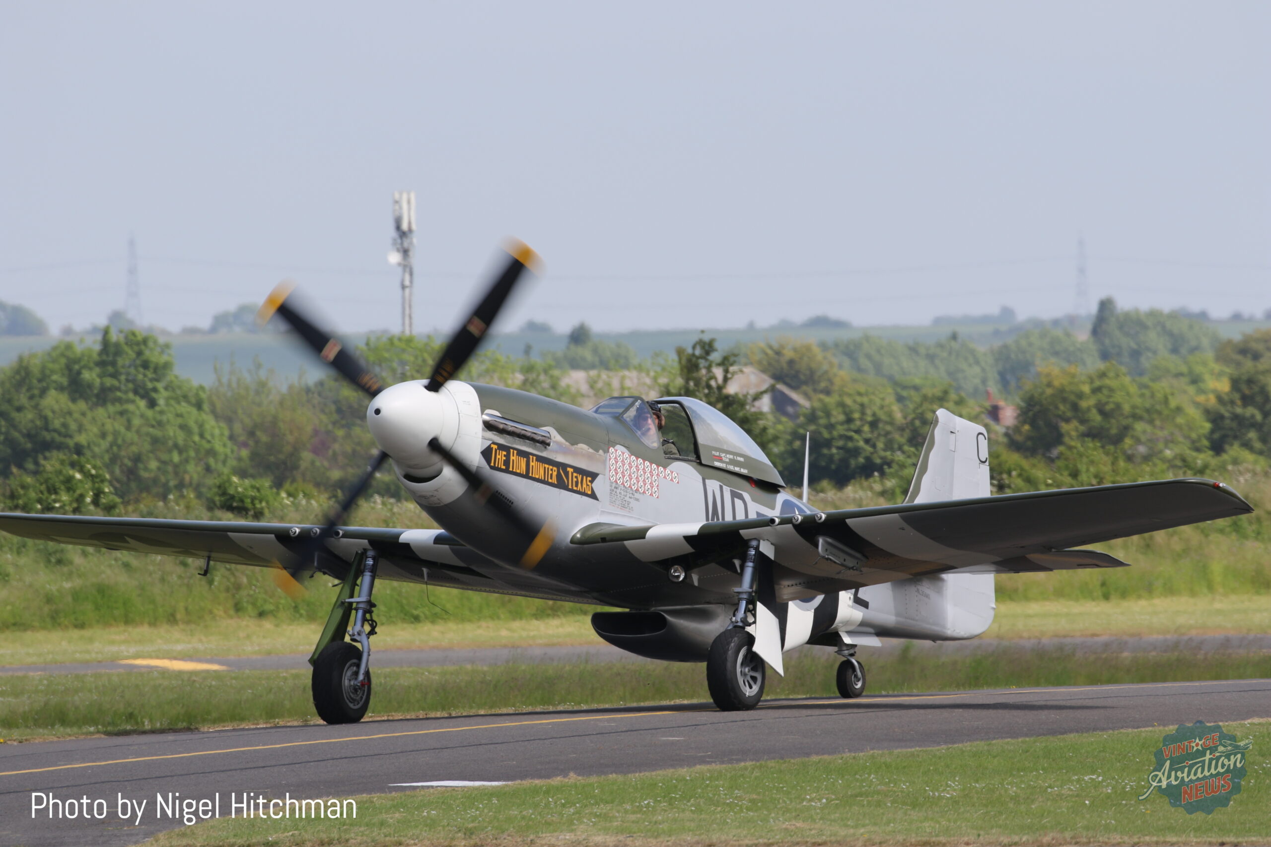 Brian Smith was flying The Hun Hunter/Texas (44-74391/N351MX). This P-51D was shipped over for Flying Legends 2018, but has remained in the UK since that summer, flying in several subsequent air shows, including various “Heritage Flights” with present-day US Air Force combat aircraft.