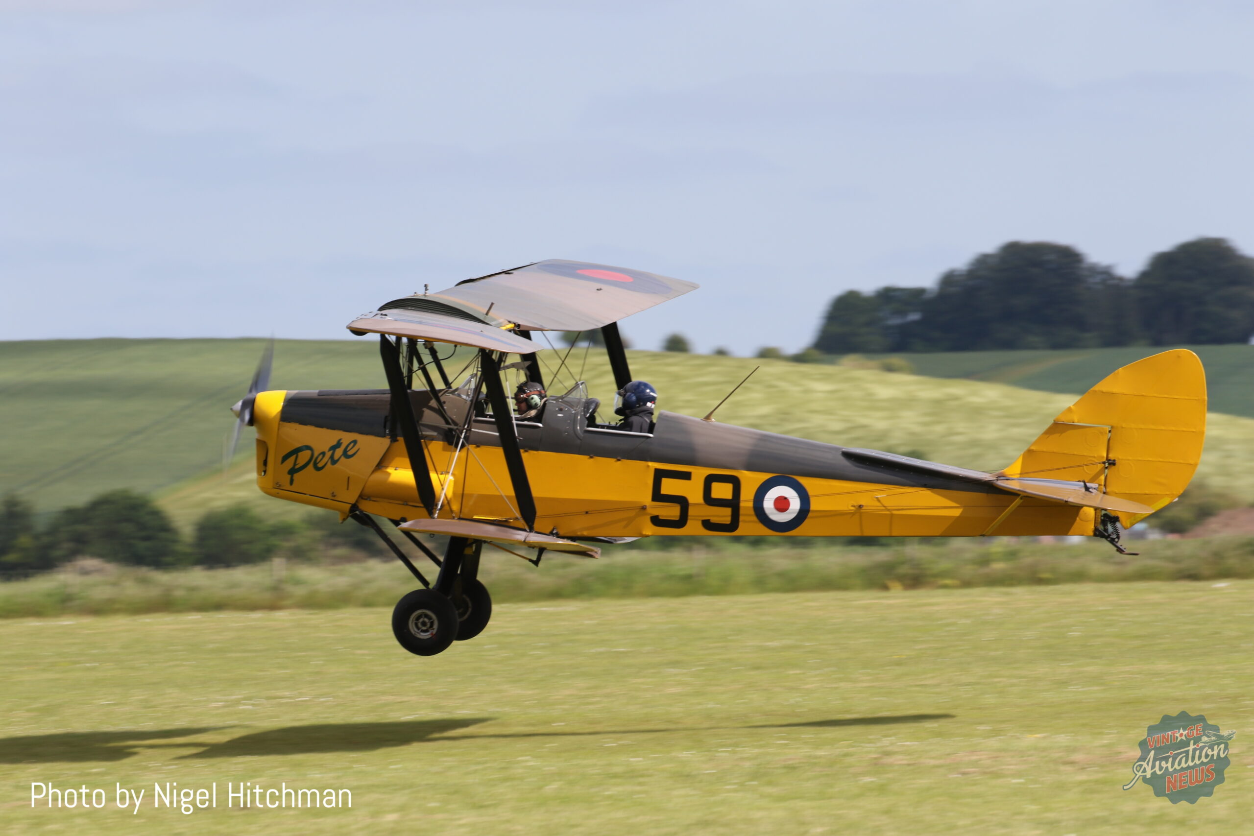 Upon arrival at Duxford, I found a very busy scene. Several warbirds were out on various ramps – a couple of two-seat Spitfires, a Hurricane, two Harvards, the Hawker Fury – and the Gladiator! I also saw the Curtiss P-40C under tow back into the hangar. Two Tiger Moths were also joyriding with passengers in the circuit, while a Dragon Rapide waited on the ground for its own passengers. And to top it off, Mark Miller’s superbly restored Dragon Rapide was on finals, returning from its own journey aloft.