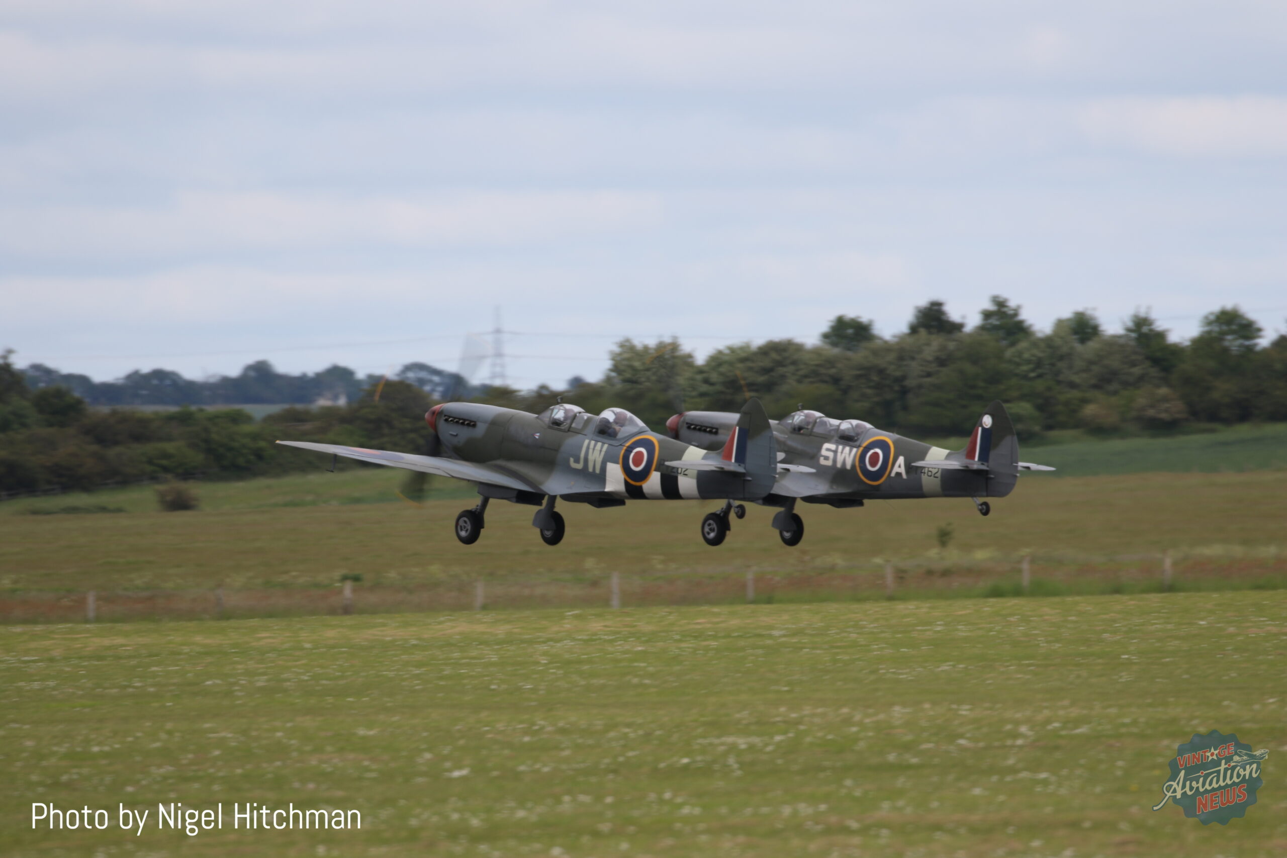 Whilst awaiting the Hurricane’s arrival, I saw the pair of two-seat Spitfires take off together for a formation sortie, one of several rides they gave that day.