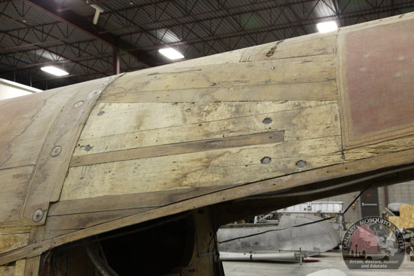 In 2010 the Calgary Mosquito Society entered into an arrangement with the Bomber Command Museum of Canada, itself a grass-roots community museum that has developed significant expertise in restoring vintage warbirds. The agreement includes the use of the museum’s shop space, specialized tooling and their member’s expertise in exchange for allowing visitors to the facility the opportunity to see a de Havilland Mosquito up close and “in the flesh.” The Calgary Mosquito Society, in its proposal to the city, offered to pay the full cost to restore both the Mosquito and the Hurricane, but when the committee of the city council finally decided the fate of the Mosquito and Hurricane in December 2011, in deciding to partner with the non-profit Calgary Mosquito Society, the city, unasked, agreed to pay for half the estimated cost of the restorations, matching all donations to the society dollar for dollar! The Mosquito, in limbo for nearly 50 years, was finally on the road to restoration and once completed will finally go on static display in Calgary as originally intended.