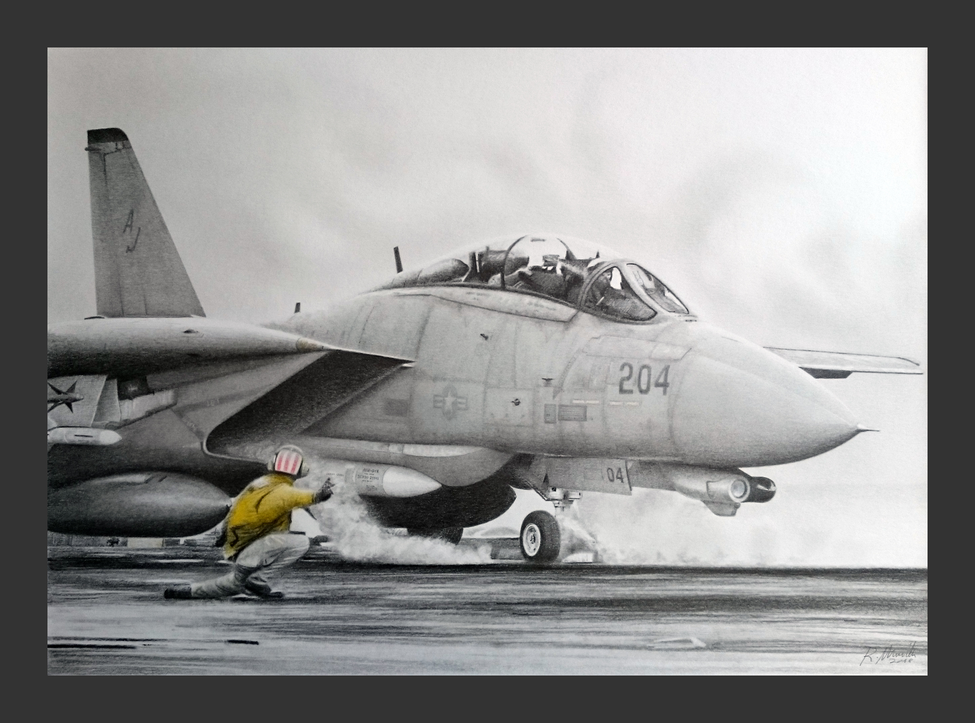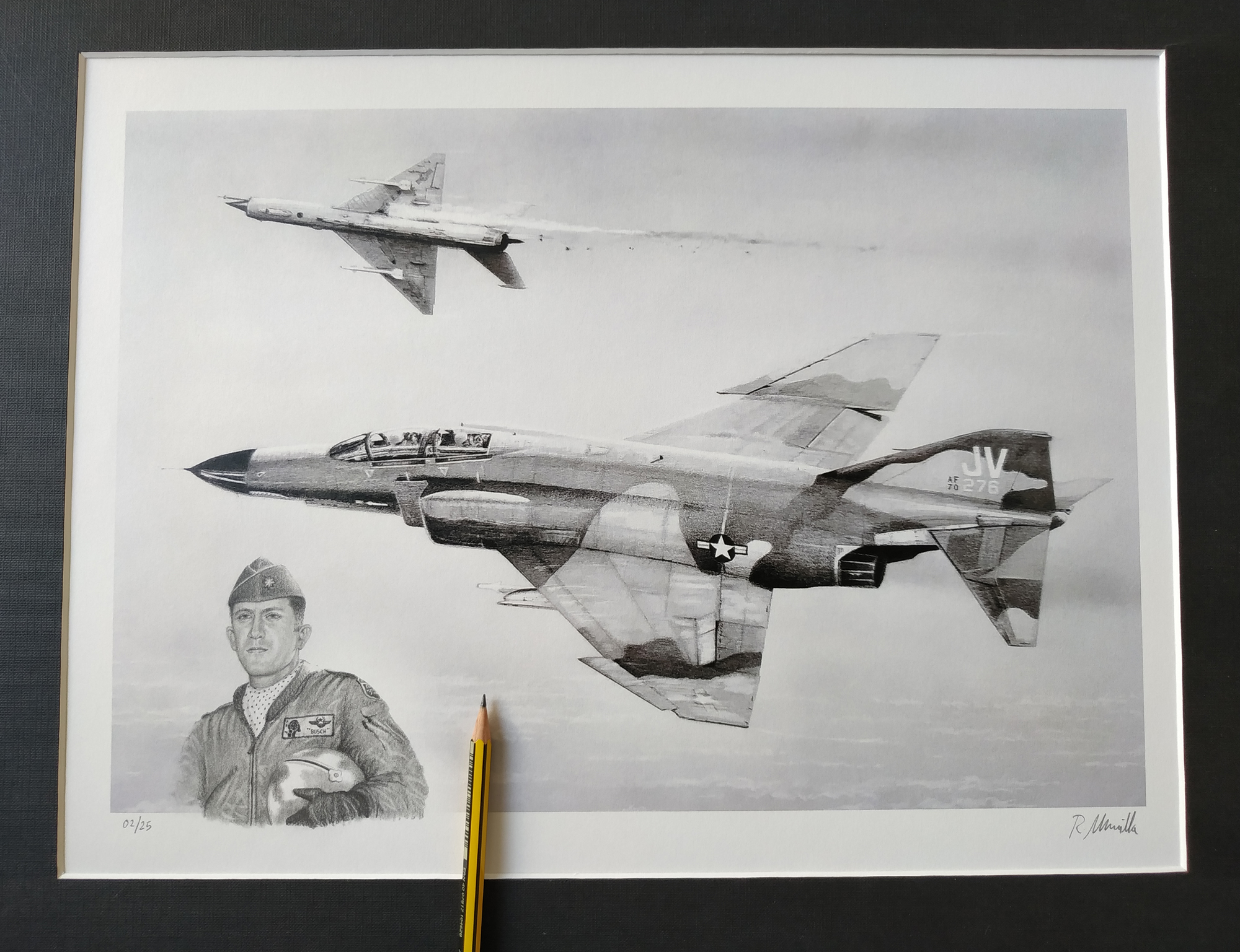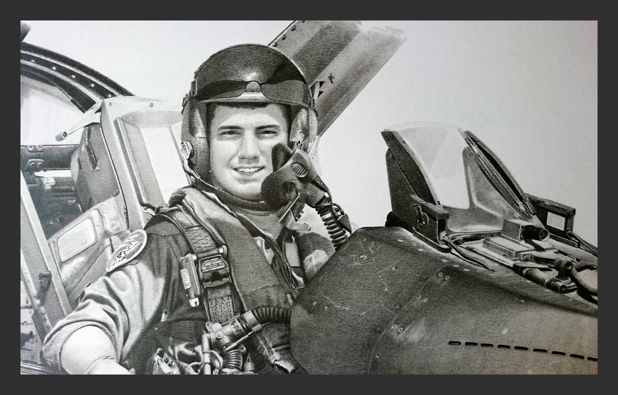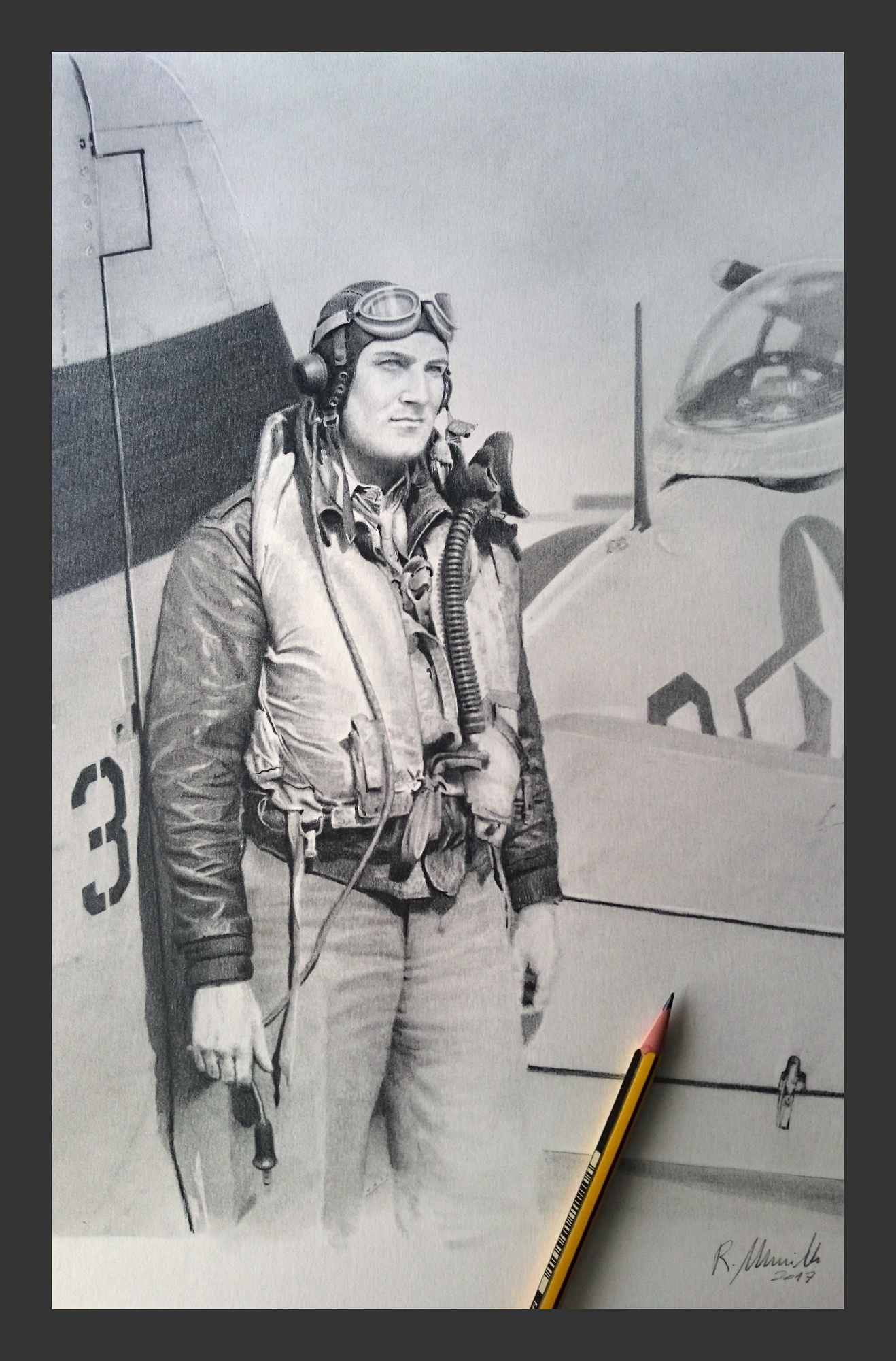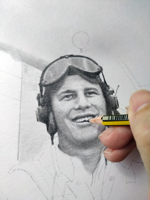 RM: That is right! My clients request lots of portraits of famous pilots, especially Robin Olds and other great pilots. Some retired pilots request his portrait next to his plane or inside a fighter, but my favorite pilot is Robin Olds. That man radiates a special energy; drawing his portrait is an incredible experience!