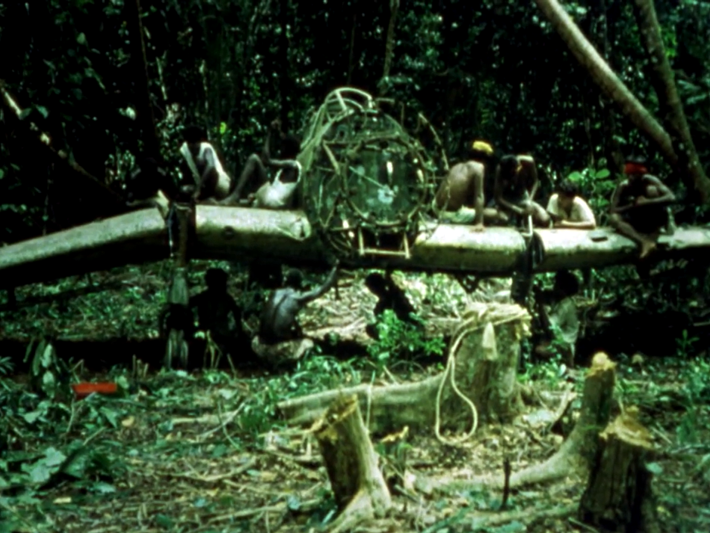 With the forest cleared around the wrecks, Bob Diemert had the local laborers cut the Val and the Zeros into sections that could then be carried by hand to the shore, where they were loaded onto a barge and towed down to Port Moresby. Upon arriving at Port Moresby, the Japanese aircraft were sent to Port Moresby International Airport (known during the war years as 7 Mile Drome/Jackson Field) and stored outdoors.