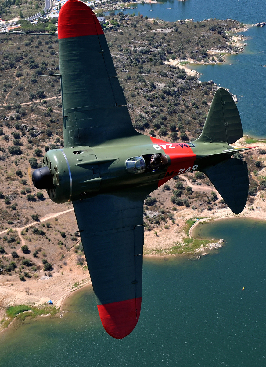 FIO’s I-16 made its maiden post-restoration flight in 1997, and its official public debut in Spain came on May 4th, 2008. The plane is marked as CM-249, a Super Mosca flown by Captain Jose Maria Bravo, commanding officer for 3 Escuadrilla. Although this was Captain Bravo’s plane, as the white squadron leader’s code numbers indicate, Sgt. J. L. Tarazonait also flew it on occasion. The 3ª Escuadrilla “Moscas” formed in 1937, commanded by a Russian, Boris Smirnov. The Esquadrilla fought during the Battle of Guadalajara and later in the Battle of Segovia. The squadron had two further Russian commanders, Ukhov and Yevseviev during the Battle of Brunete. After reunited with 2ª Escuadrilla, the planes fought during the Battles of Belchite and Teruel. After this last battle, the 3rd Esquadrilla received a Spanish commander named José María Bravo in Salou during march 1938. He led them through various aerial battles until the unit was disbanded in February 1939 after the Battle of Ebro.