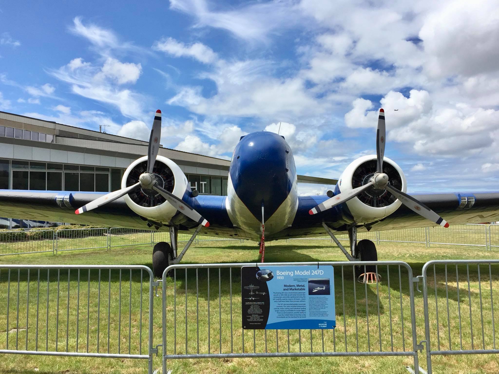 These photos were photographed when N13347 was still at the Museum of Flight’s Restoration Center at Paine Field, Everett. On April 26, 2016, Boeing test pilots Mike Carriker and Chad Lundy took N13347 for its final flight from Paine Field to the Museum of Flight‘s primary location at Boeing Field/King County International Airport. Today, it is on display in the museum’s Aviation Pavillion, surrounded by airplanes ranging from one of its contemporaries, a Douglas DC-2, to a Concorde supersonic transport and Boeing 787 Dreamliner prototype. N13347’s brief flight marked the last one carried out by any Boeing Model 247.