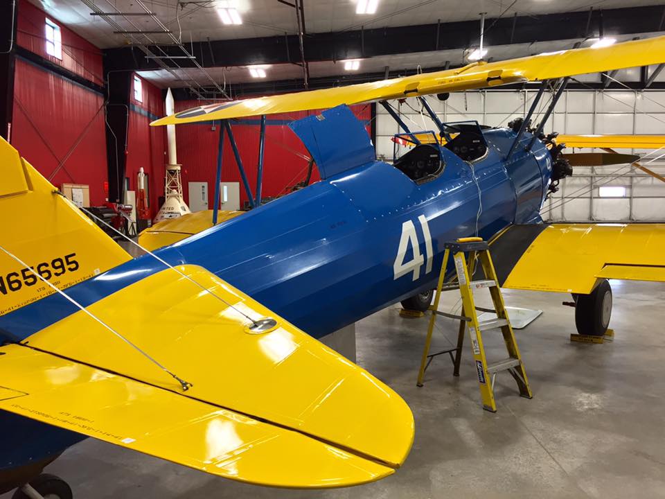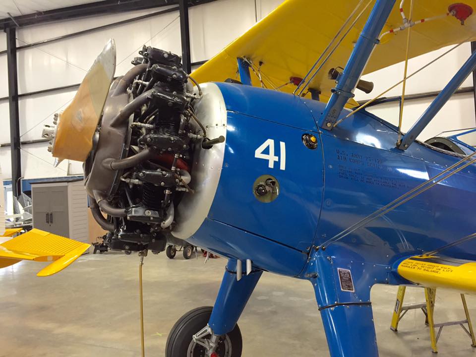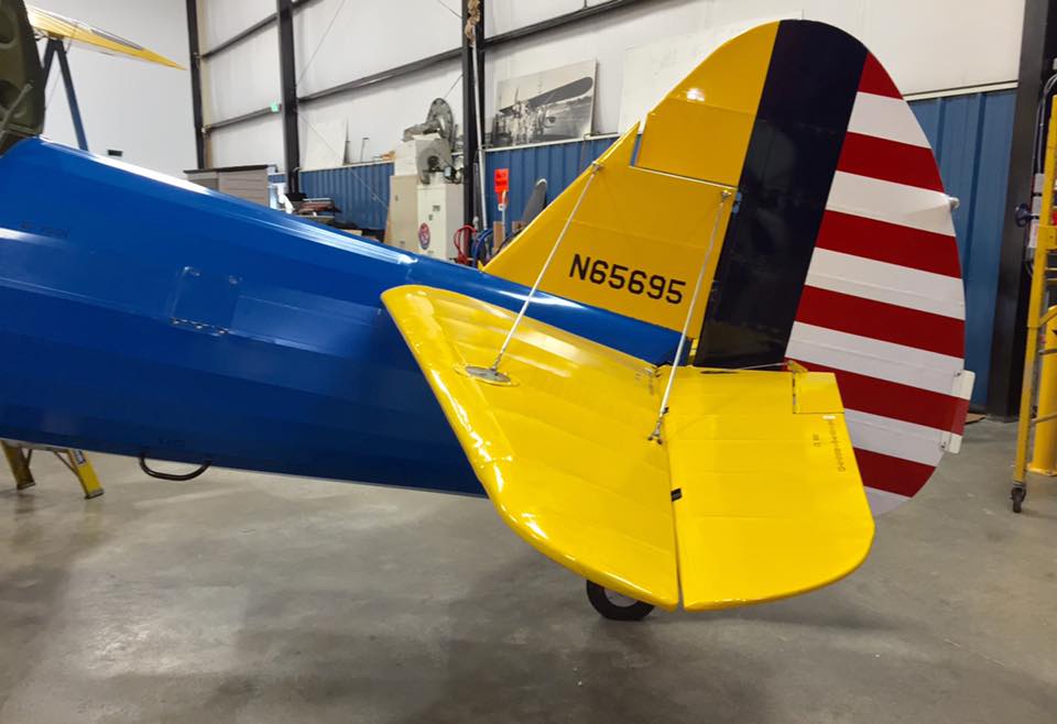 Editor’s note: This aircraft, construction number 75-8584, was originally ordered for the U.S. Army Air Force as PT-13D serial number 42-109551 as part of a production contract that was eventually cancelled by the USAAF before delivery. Instead, 42-109551 was transferred to the US Navy as N2S-5 Bureau Number 43490. Accepted into the Navy on October 2, 1943, and delivered three days later, N2S-5 BuNo 43490 spent the entirety of its military career at Naval Air Station Memphis (where Millington-Memphis Airport and Naval Support Activity Mid-South now stand). On November 30, 1947, N2S-5 BuNo 43490 was officially stricken from the US Navy’s inventory and declared surplus. By 1964, it was registered to Jimmy Davis Flying Services of Nitta Yuma, Mississippi as N65695 and was employed as a crop duster. The aircraft was involved in an accident on July 23, 1970, but was later rebuilt to its original military configuration and painted in US Army Air Corps colors before being donated to the Heritage Flight Museum in 2000.
