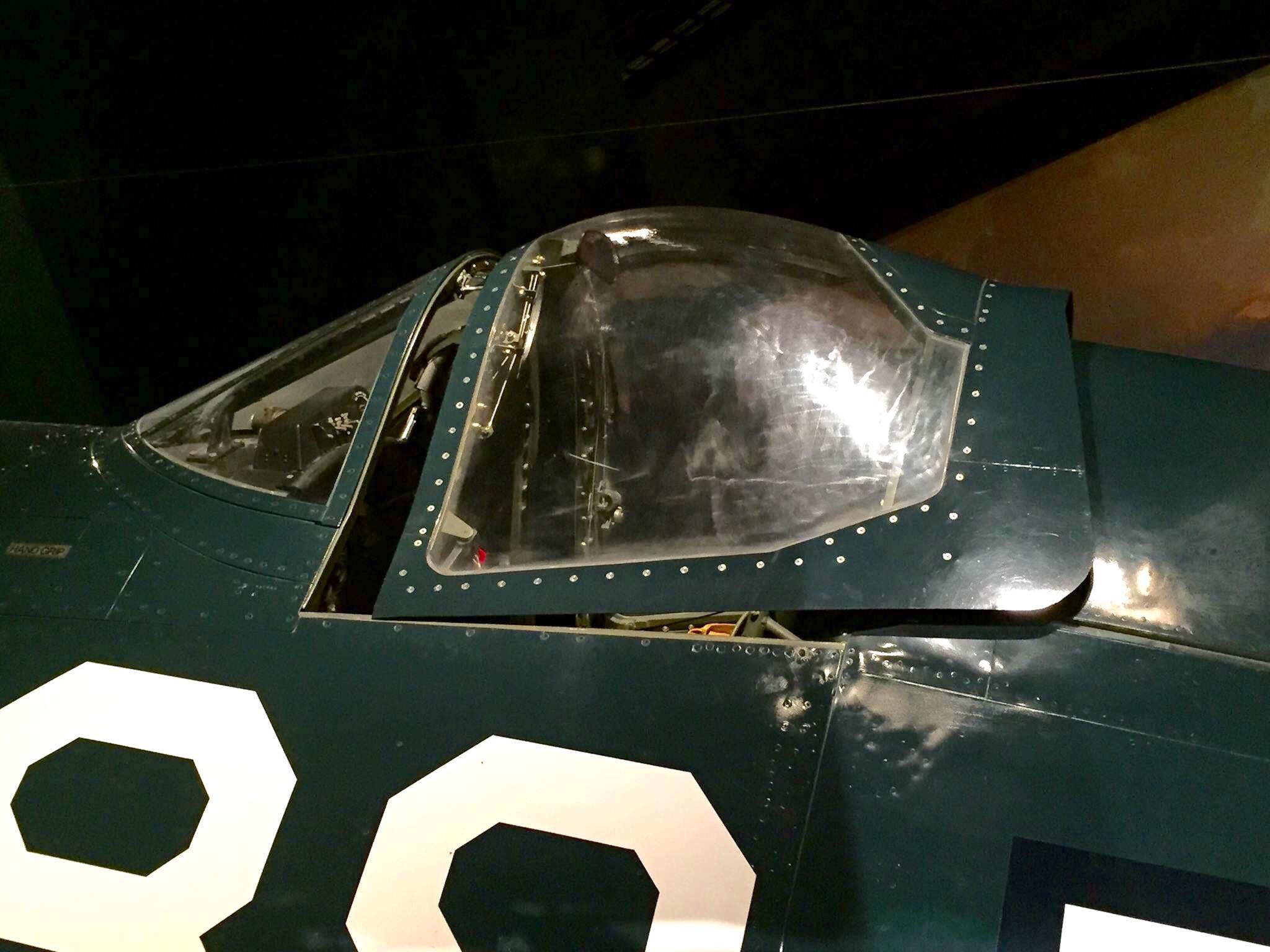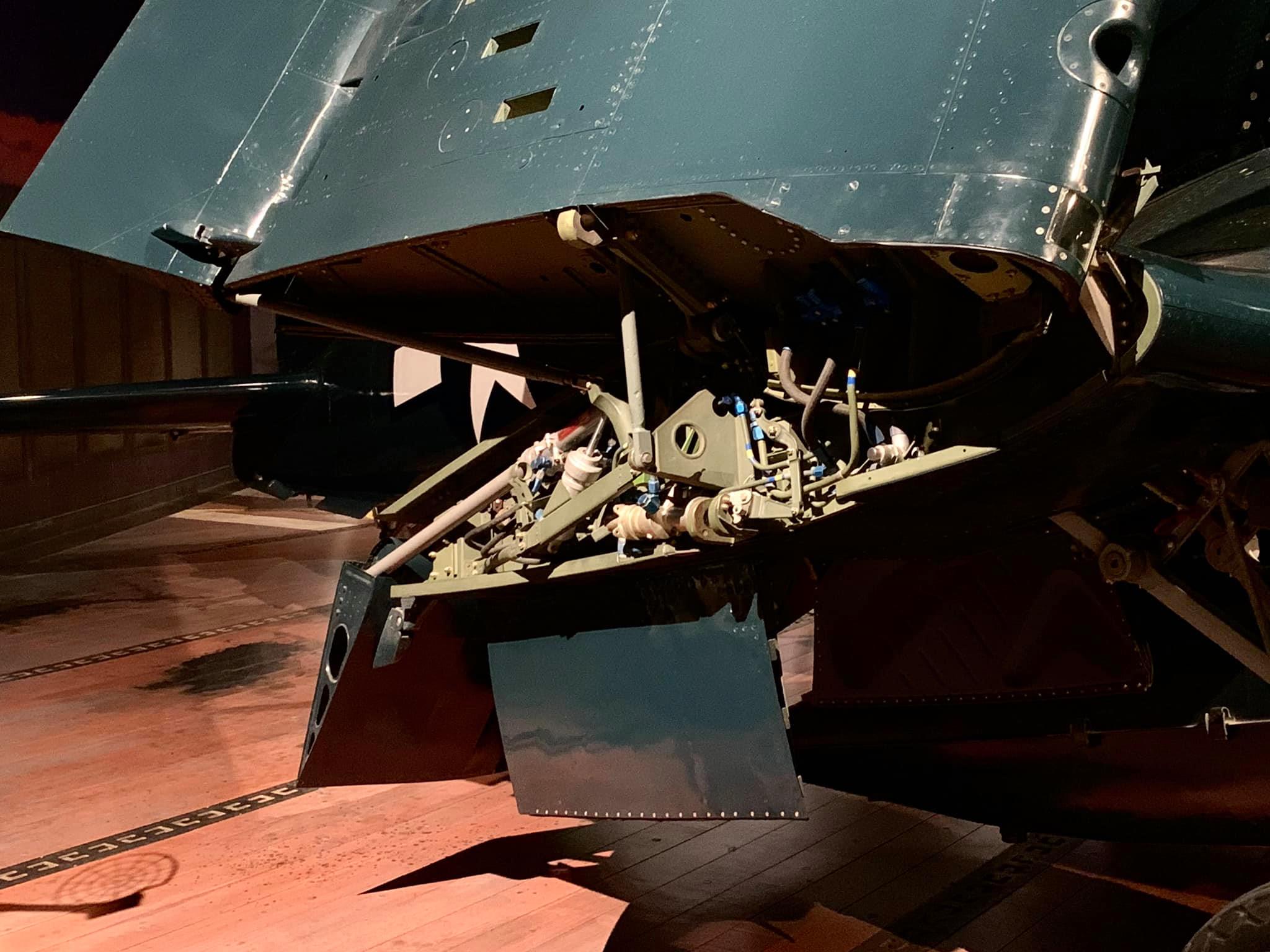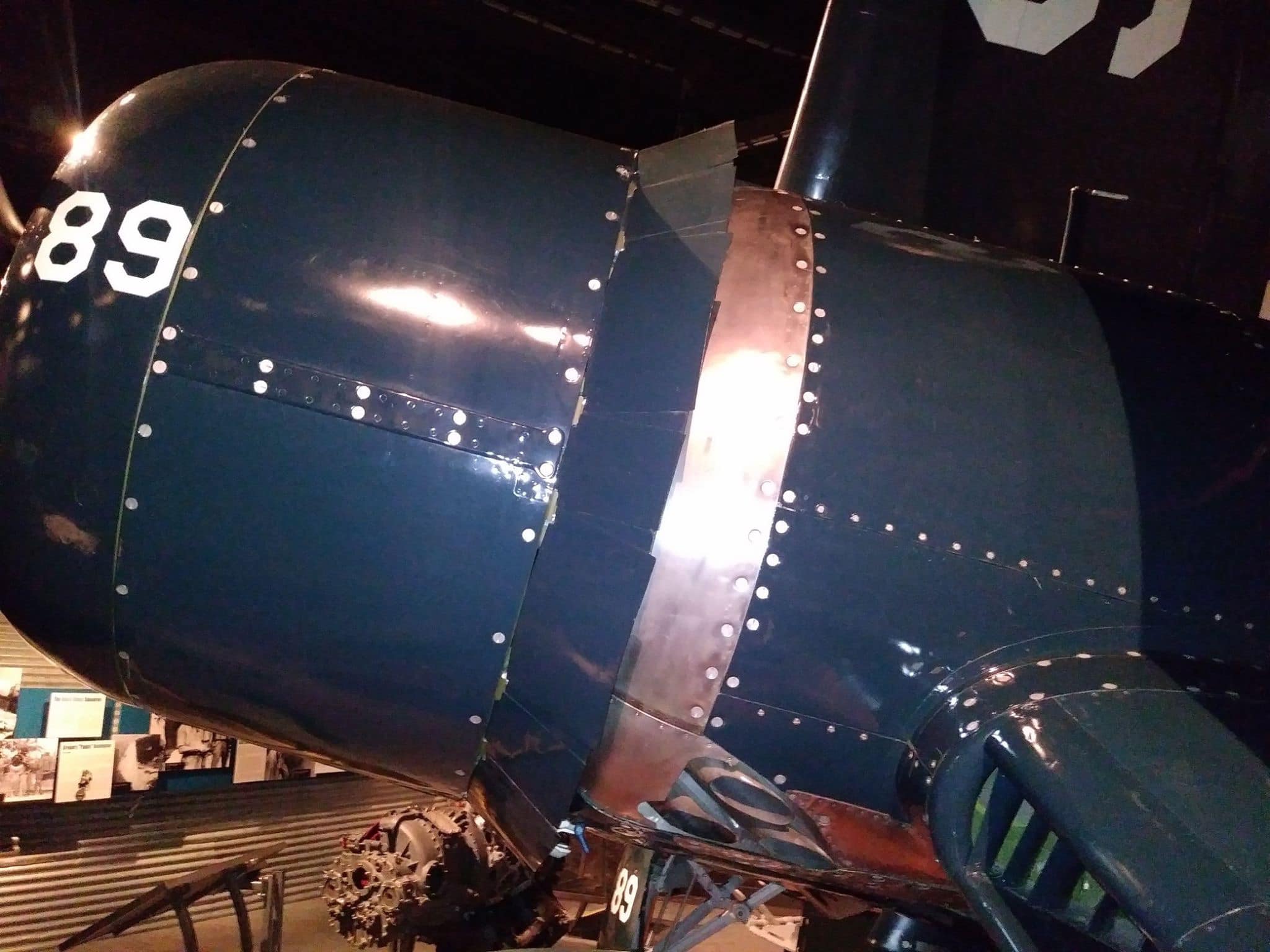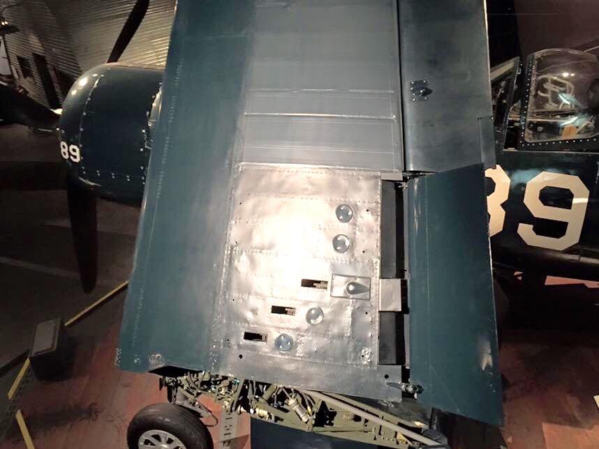 These photos were taken by me, and some are courtesy of Don England, formerly of MOF – thanks very much. Nicknames for the Corsair included: U-Bird, Hog-Nose, Horseshoe, Great Iron Bird, Sweetheart of Okinawa, Super Stuka, The Hog, Bent Wing Bird, Ensign Eliminator, Hosenose, and Whistling Death. The Corsair was designed by Chance Vought Chief Engineer Rex B. Beisel, a graduate of the University of Washington. Fitted with a Pratt & Whitney R-2800-8W Double Wasp engine powering a 13 ft. Hamilton propeller (9 in. clearance between prop tips and ground or carrier deck). Armament varied but could be fitted with six wing-mounted Browning M2 .50 caliber machine guns and 8 HVAR rockets or 2,000 lbs. of bombs from wing hardpoints (the inner undersurfaces of the wings were reinforced). Here is a link to my walkaround: https://www.facebook.com/video.php?v=961619977198993
