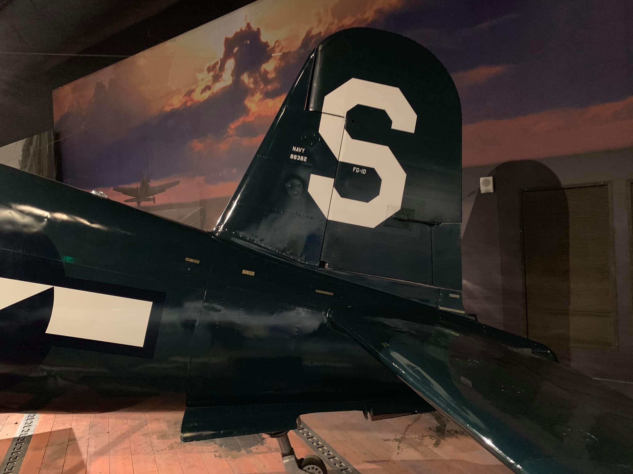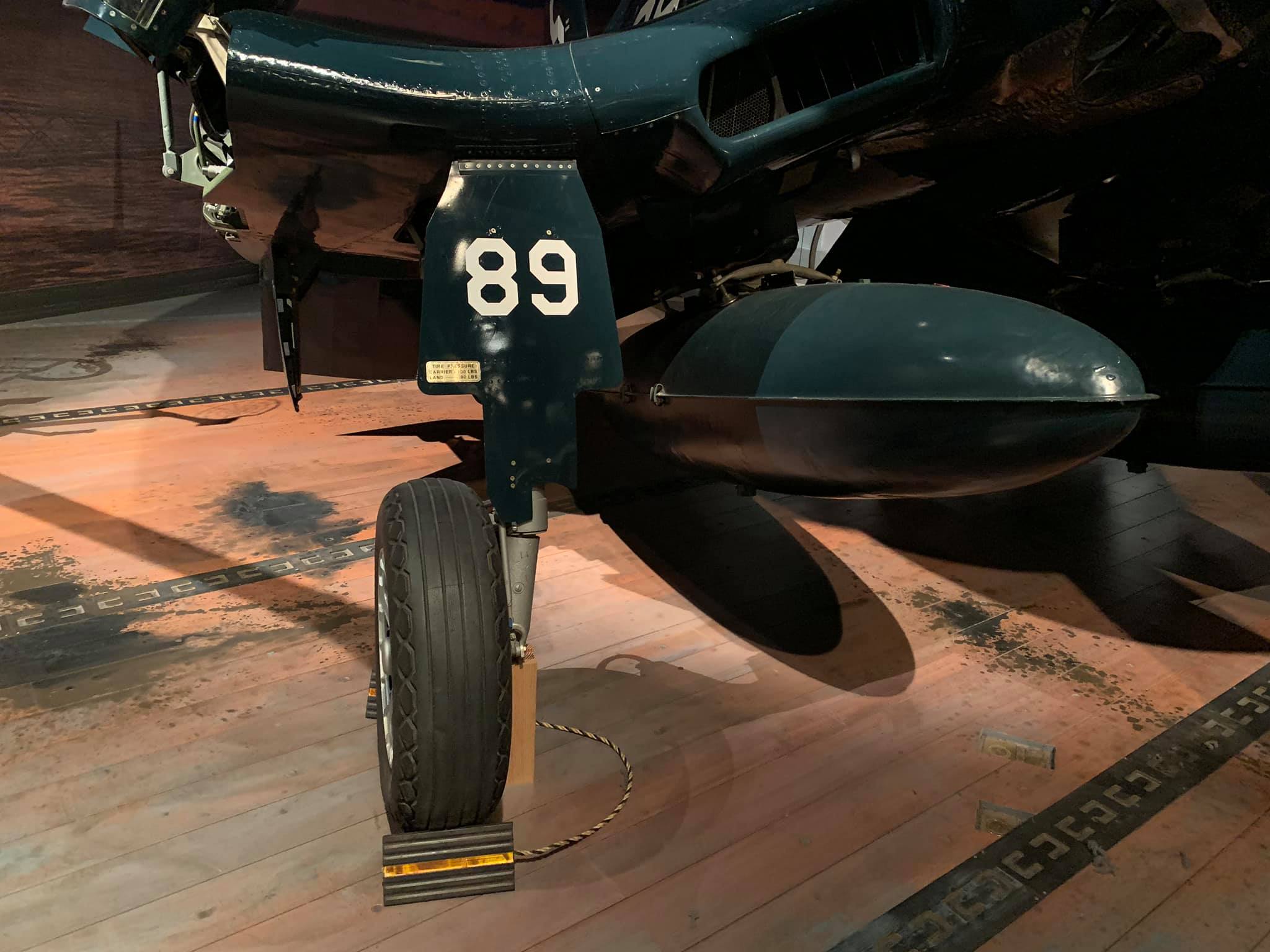 The airplane is dedicated to, and a good deal of the restoration funding came from family and friends, in honor of Navy LTJG Jerome Reese “Jomie” Schuchart, USNR, a Seattle pilot killed April 13, 1989, in a midair collision during a routine instructional flight in a T-2C Buckeye at NAS Meridian, Mississippi. It is painted as #89 (the year of his death), tail code “S” (representing the lieutenant’s last name as well as representing NAS Sand Point, Washington) of the USS Valley Forge (CV-45). I am told by James Oldfield, one of the restorers, that he found the pilot’s knife and the aircraft’s identification plates in the cockpit. It is owned by the National Naval Aviation Museum, Pensacola, and is on loan to the Museum of Flight (MOF) on Boeing Field in Seattle, Washington; and while there is no flying in its future, again at last check, it has been restored to almost flyable status (the fuel tank bladder would need to be redone and the port wing requires some restoration for example.