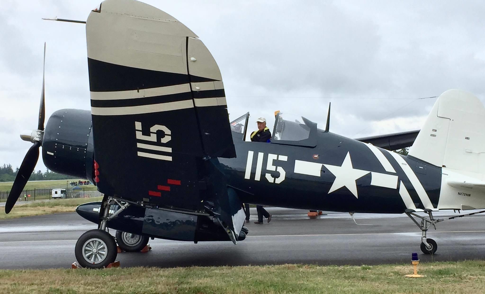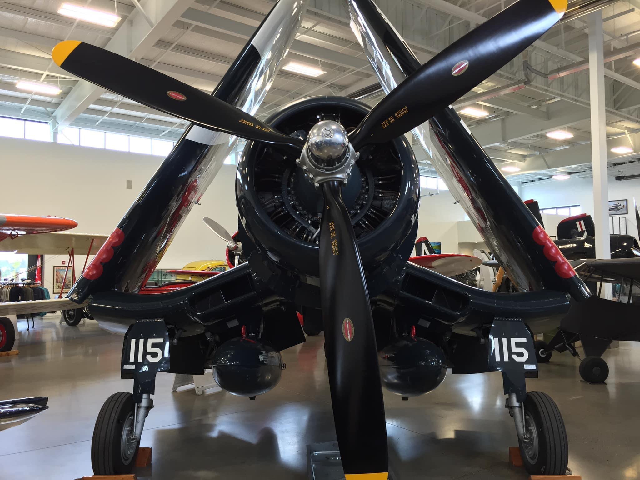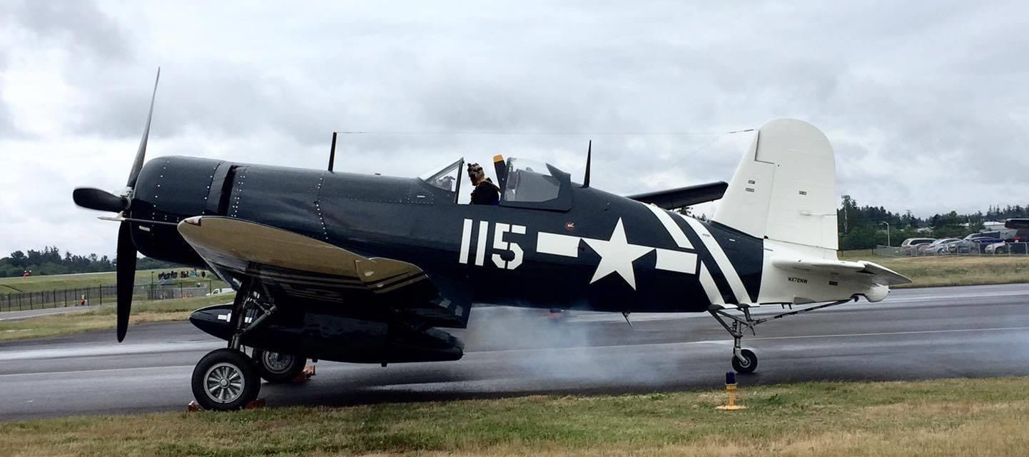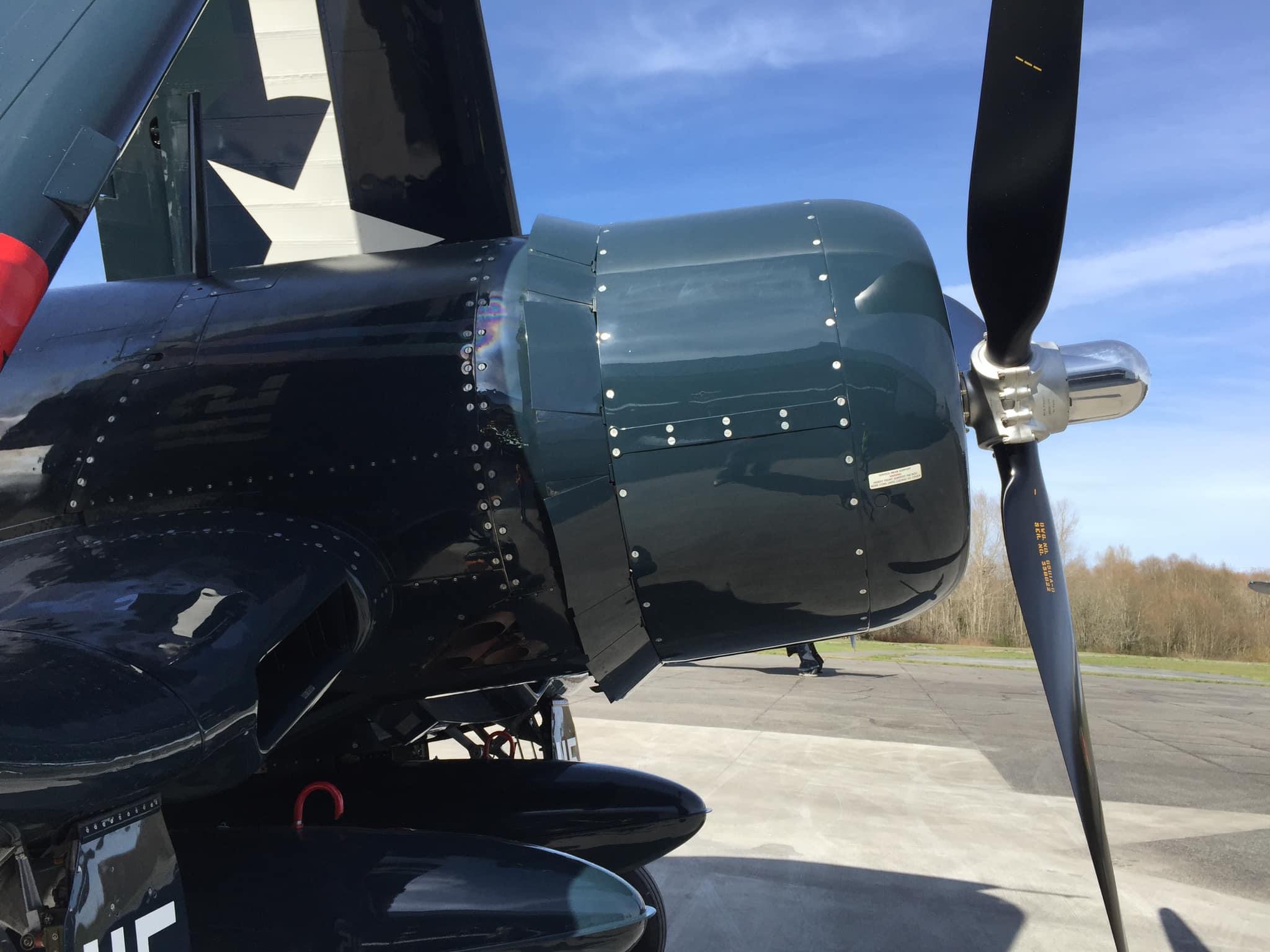 By November of 2019, the FAA issued an airworthiness certificate to owner Charles Somers of Hillsboro, Oregon. It is painted as #115 of VMF-213 (“Hell Hawks”) of the escort carrier USS Saidor, CVE-117, which was based at Pearl Harbor between 1945-46. The restoration includes the pilot relief tube (with black funnel as well as the drain plug under the fuselage), a gun camera in the starboard wing, a landing light in the port wing, catapult hooks and a starboard wing torque spoiler. Of course, the seat cushion is not authentic period gear! My photos and YouTube clips. https://youtu.be/29U6zUwLrxI https://youtu.be/AAK_5wLPG3s https://youtu.be/tQl1G6pTvCs https://youtu.be/sRvbfXvrZpY