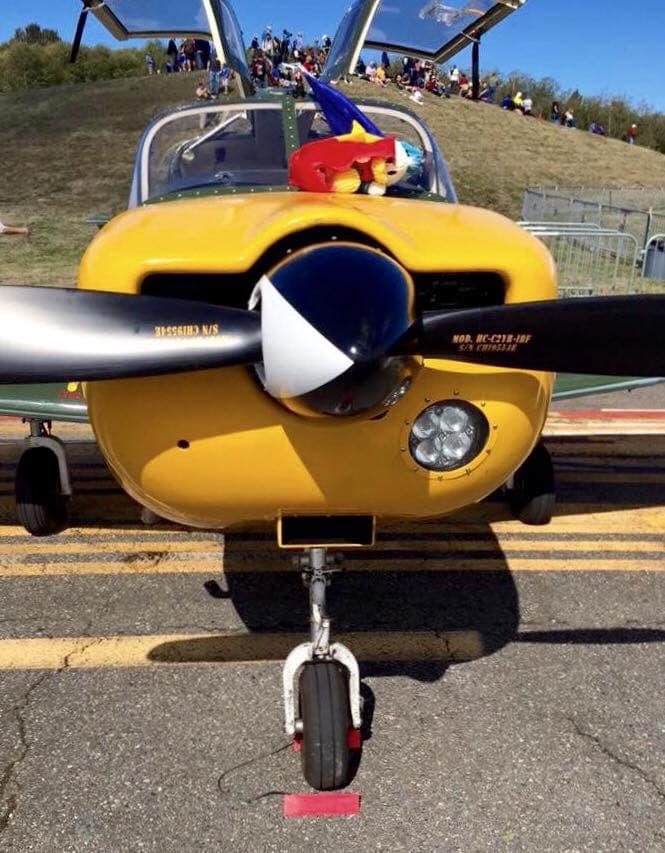 Industria Aeronautică Română IAR-823, s/n 5 “Hai Fetito.” This particular aircraft was built in Brașov, Romania and has been painted in honor of air ace 2nd Lt. Ion Di Cesare (Dicezare) who is best known for flying Romanian Messerschmitt Bf-109 aircraft for the Grupul 7 Vânătoare of Forţele Aeriene Regale ale României (Royal Romanian Air Force, FARR) and is credited with 16 confirmed victories (3 more probable). Specifically, it is painted in honor of his Bf-109 “Hai Fetito” (“Come on Fetito”), referring to “Fetito” which was the name of Di Cesare’s favorite racehorse (see historic photo). “Donald Duck” was the group’s unit badge. The pilot’s initials “IDC” and five white stripes symbolizing Di Cesare’s ground victories during Operation Barbarossa are also painted on the fuselage. In one instance, on July 18, 1941, his aircraft was damaged in an air battle and he crash-landed near Huși, Romania (he said his landing gear would not come down so he had to belly-land). He died in 2012 at the age of 96. As of this writing, this aircraft is registered to Robert Hill of Kenmore, Washington. My photos and video clip (using older camera equipment) while it was at Historic Flight Foundation when it was at Paine Field in Everett/Mukilteo, Washington. https://youtu.be/9m63v15LjqA