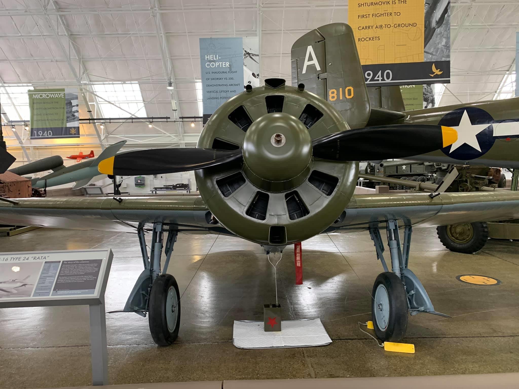 Polikarpov I-16 Type 24, s/n 2421014, N7459. From what I can determine, this particular aircraft was built in 1940 at the Polikarpov Design Bureau Plant No. 21 (a Soviet “OKB” or Experimental Design Bureau) in Nizhny, Novgorod (also known as Aviation Plant 21 and now the location of MiG manufacturing), and from July 10, 1940, it was deployed to the Eastern Front. The exact details are not definitively known from the records I have read, but it may have been one of two Russian I-16’s that were shot down when five B-239 aircraft (see description below) of No. 24 Squadron of the Finnish Air Force including ace Flight Master Yrjö Turkka (who wrote about the incident) encountered them on August 13, 1941, near Soanlahti, Finland (a former municipality of Karelia), which flew up to intercept Soviet bombers.
