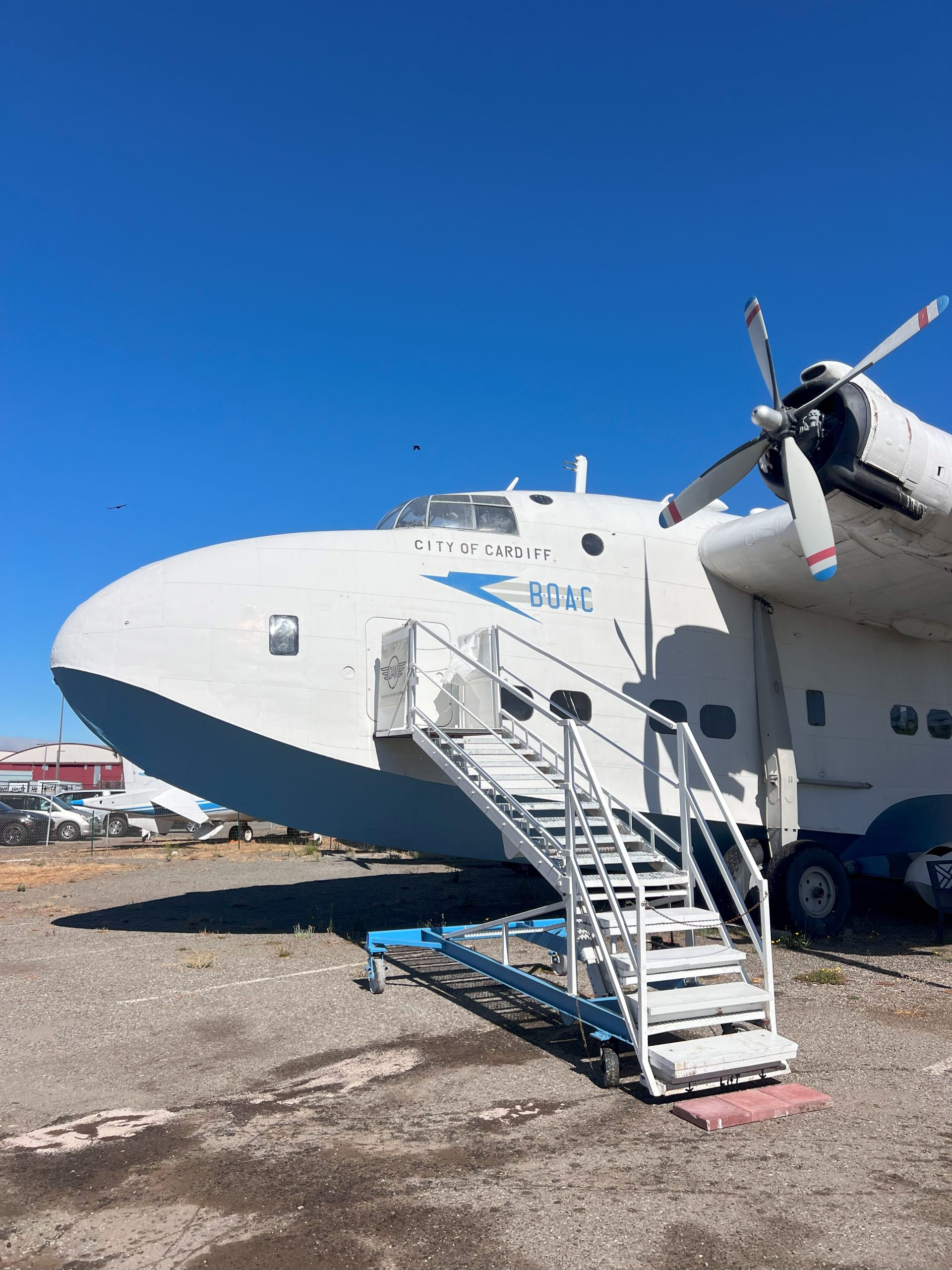 By 1987 it was evident that the Short Solent City of Cardiff, renamed Star of Papua, Isle of Tahiti, Halcyon, and lastly Seaflite, would not be returning to the skies, as no customers were interested in sponsoring the restoration of the aircraft for contract work. Luckily for the aircraft, a new museum in Oakland was interested in preserving her. On August 12, 1987, Short Solent N9946F was loaded once more onto a barge and towed from Richmond back to Oakland, where it would join the collection of the Western Aerospace Museum (today called the Oakland Aviation Museum). Originally displayed at the museum in its RAF paint scheme as NJ203, its exterior has been repainted to reflect its service with BOAC as G-AKNP City of Cardiff. Today, the British-built flying boat remains the centerpiece of the OAM, and visitors to the museum can go on guided tours of the interior on Sunday afternoons offered at 12:00pm, 1:00pm, and 2:00pm. To learn more about the Oakland Aviation Museum, visit the museum’s website HERE