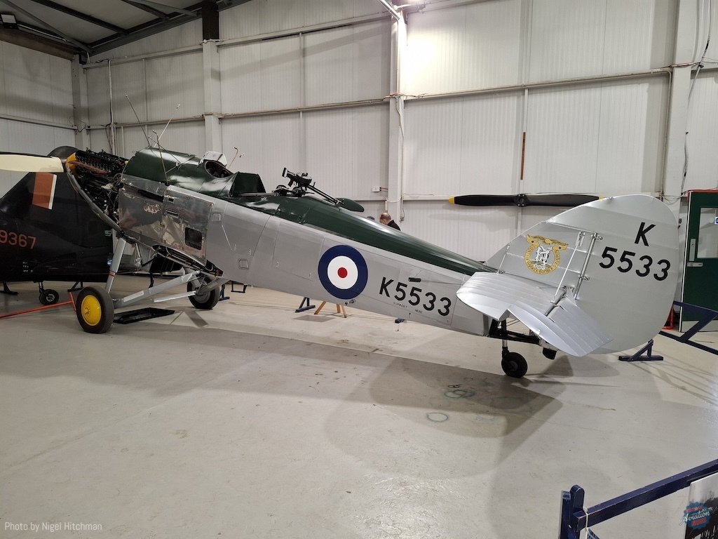 The hangars were all open and packed with the usual array of interesting aircraft, these included the Hawker Hind G-AENP K5533 now coming to the end of its complete restoration with the fuselage fully painted and the overhauled engine installed. One wing was still in the workshop being covered, I believe that is the last one to be completed.