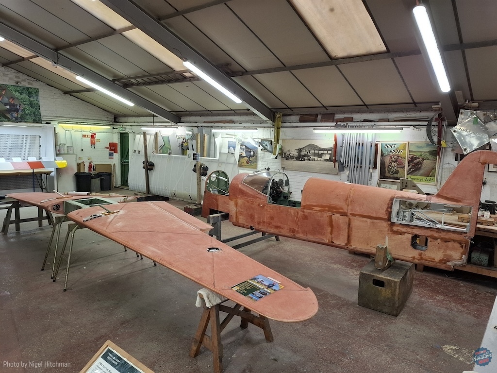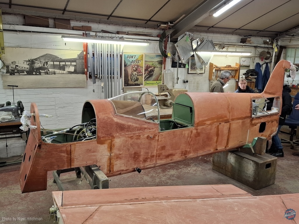Percival Mew Gull G-AEXF: The record breaking aircraft flown by Alex Henshaw was removed from service following a heavy landing to enable a thorough inspection, and while it was out of the air they decided to do a complete re-cover and repaint of this older restoration. The uncovered structure looked in great condition, I’m not sure how much of this is the original 1936 structure, as it was rebuilt at least twice after damage in the 1970s (from a runaway Auster!) and 1980s, and even and several times before that.