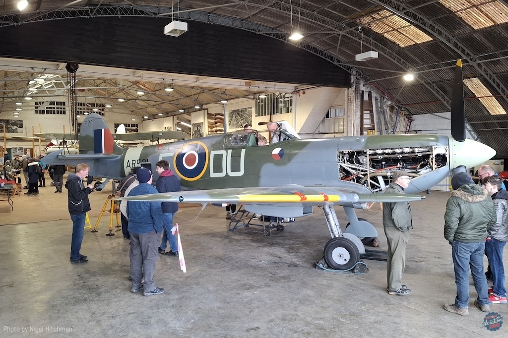 Every year on one weekend, the fabulous Shuttleworth Collection opens up their engineering workshops for close inspection by visitors. This year the collection opened the hangars over the weekend of February 22-23. With the barriers removed, people can get up close and see exactly how the aircraft are constructed and maintained with plenty of engineers and pilots available to explain how things work. There were talks and demonstrations of rotary engines and on the Hucks starter and examples of fabric covering. Additionally there were bus rides, vintage machinery operations, and vintage cars and bikes. You could also sit in the collection’s Spitfire Mk.V AR501 cockpit!