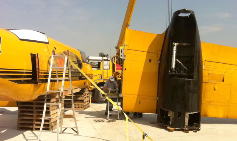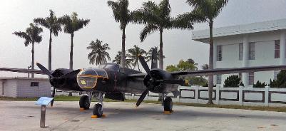 A-26 arrives in Taiwan in pieces for assembly (Image Credit: Classic Aircraft Aviation Museum)Restored Black Bat A-26 on Display at ROCAF Academy (Image Credit: Classic Aircraft Aviation Museum)The Invader from the Classic Aircraft Aviation Museum, Serial #: 44-35444 was built in 1944 and served in World War II with the USAAF, the Korean War for the USAF, and served in the ROCAF’s Black Bats 34 Squadron until 1969, when it was decommissioned and entered into civilian service, first with Northwest Air Service in Seattle, Washington through 1971, then converted to an agricultural sprayer for Air Spray Ltd. of Edmonton, Alberta. The plane was then converted into an aerial Tanker in Chino, California in 1975. The Museum acquired the plane in 2006 and made it airworthy again, though they did not restore its military markings. The plane was disassembled and shipped to the ROC in January 2012 where the Taiwanese Air Force further restored it, painted it in black and marked it with the squadron number “844,” the number of an invader flown by the Black Bats. The plane was unveiled at a ceremony attended by over a dozen surviving members of the squadron, and is now on permanent display at the Republic of China Air Force Academy in Kaohsiung, Taiwan, commemorating the extraordinary bravery of the men of the Black Bat Squadron.