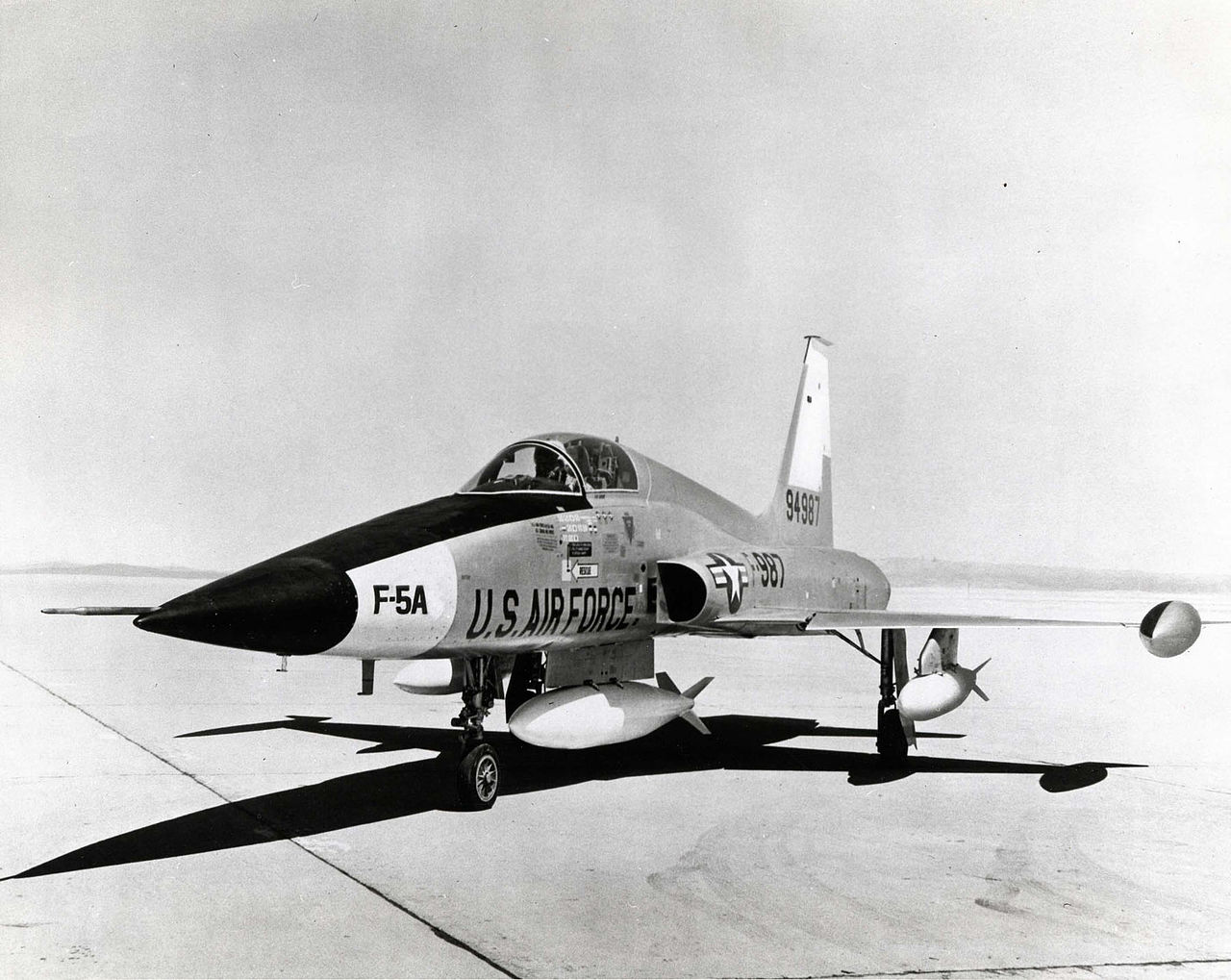 The first Northrop YF-5A prototype (Image Credit: USAF)The Northrup F-5 was initially designed as low-cost, low-complexity and high reliability jet fighter, for use on US Navy escort carriers that could not accommodate larger jets. The F-5 suffered a torturous, meandering development with the the Navy dropping escort carriers from its strategies, but Northrup carried on with development. The F-5 did become the basis for the T-38 Talon trainer used for training pilots within the US Air Force, which remin in service to this day, over 50 years after their first entry into service. The USAF felt there was no strategic need for a light attack fighter within the force, and despite the F-5 proving itself superior in ground attack duties, and demonstrating unprecedented reliability, the air force passed on the design.