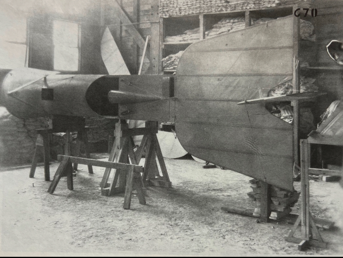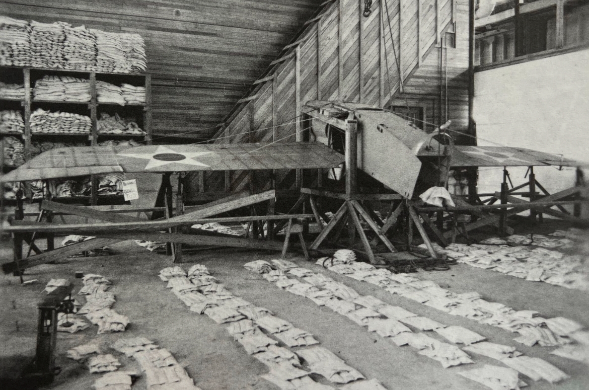 Intrigued by the company’s proposal, the Army made an order for two prototypes on April 17, 1917, which were issued the Signal Corps (S.C.) serial numbers 116 and 117, with U.S. Army star roundels on the wings. Additionally, the Army ordered a third Model SG that was to only be a single fuselage with no engine with instructions that it be shipped to the Colt Arms Company in Hartford, CT, likely with the intent of mounting and testing a machine gun on the aircraft. This engineless Model SG fuselage was completed and shipped to Hartford in the fall of 1917. By September of that year, SC #116 was brought to Langley Field, VA, for testing, followed by SC #117 in November. However, this is where the accounts begin to differ. In many retellings and publications, the first aircraft was used for wing stress testing, with sandbags being placed on the wing structure to simulate the loads it would bare while in the air, and to discover the point at which the structure would break, leading to the static destruction of the aircraft.