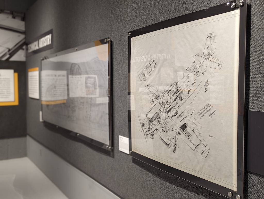 In April of 2023, Ester Aube finalized and installed an exhibit at the EAA museum using the drawings and telling the story of the draftsmen from North American and highlighting their contribution to the war efforts. When the collection was initially received from Ken Jungeberg, they had promised to do something to help get the story of the draftsmen out to the general public and get some of the drawings in public view so that people could enjoy and learn. The exhibit will be in the museum until September of 2025. “I chose some, cherry-picked some really amazing drawings to highlight in that exhibit,” says Aube. “And also was able to find family members of two of the draftsmen whose drawings are displayed and do a little bio about them, which is one of the neatest things, in my opinion.”