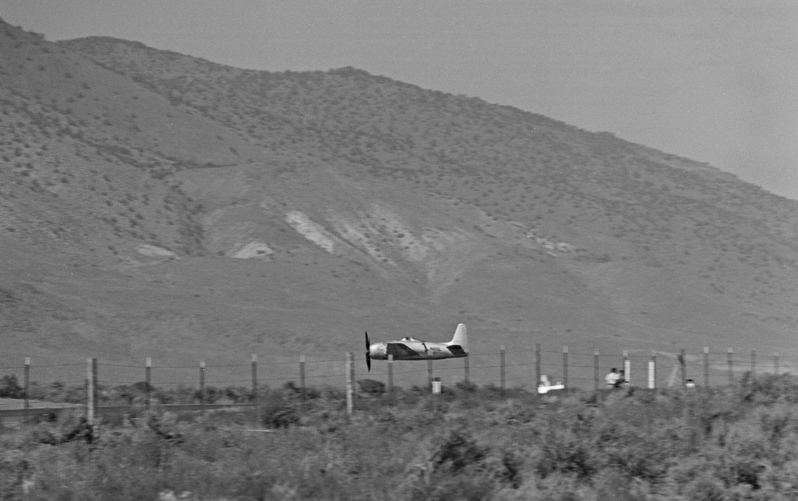 Prior to the 1968 racing season, the Bearcat underwent further aerodynamic enhancements. The joint between the fuselage and wings was smoothed out with fillets and strakes that extended from the trailing edge of the wing. A month prior to Reno the team headed for South Base at Edwards AFB in an attempt to break the 30-year-old 3Km World Speed Record, the then-current record of 469.2mph had been set by German pilot Fritz Wendel on April 30, 1939, in a Messerschmitt Me 209 V1. Darryl made four passes through the timing traps but he could only manage an average of 454mph, far below what the Bearcat was capable of achieving. The problem was eventually traced to a failed master rod bearing. A new, albeit stock, R-2800 was installed but time had run out for another record attempt, it was time to defend the title at the 5th Annual Reno National Championship Air Races, which he did successfully when Lyford’s Merlin blew up within sight of the home pylon.