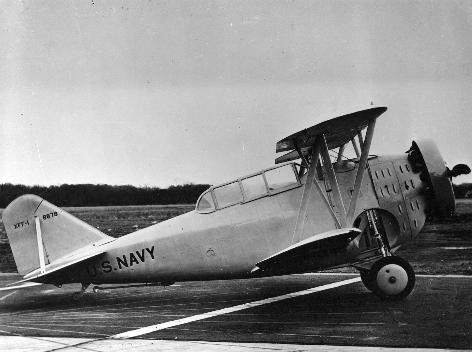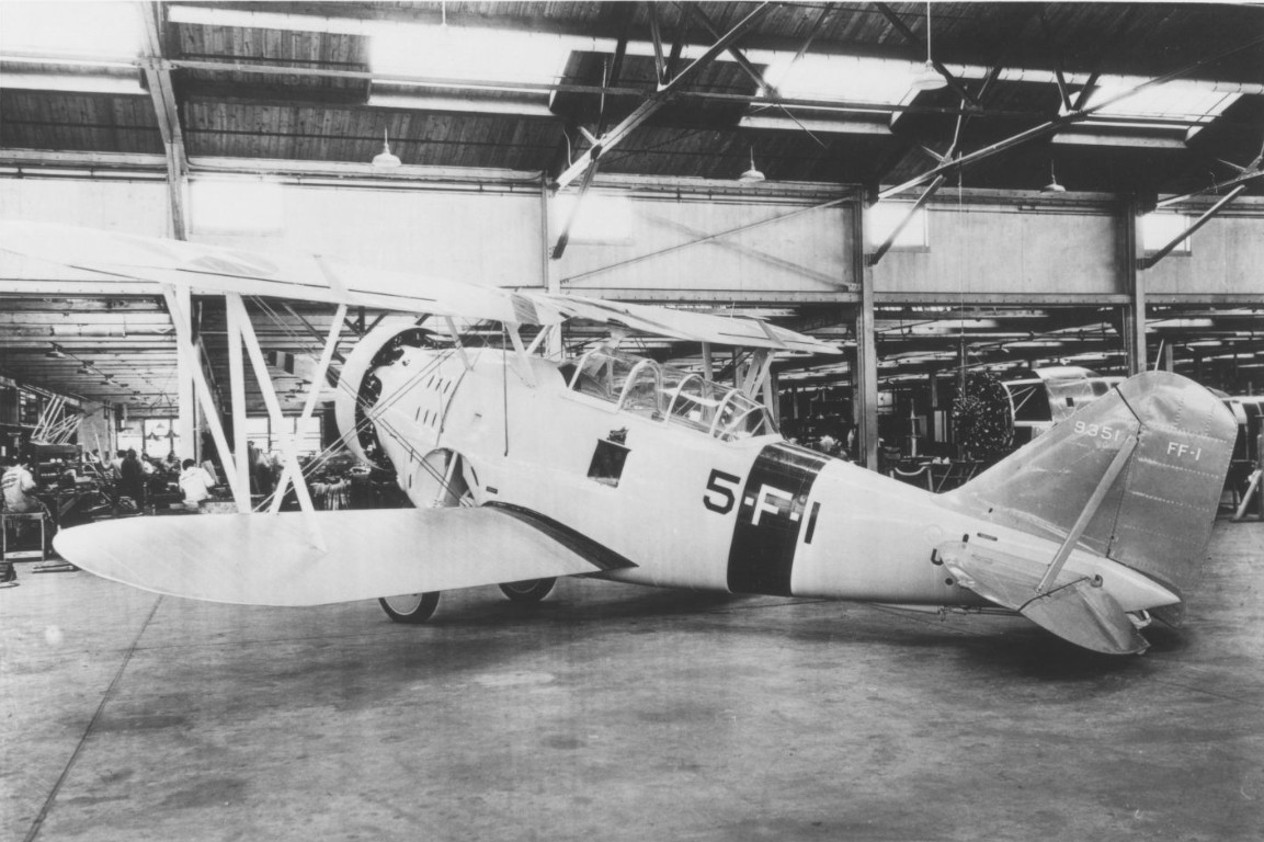 Established by test pilot and aeronautical engineer Leroy Grumman on December 6, 1929, the Grumman Aircraft Engineering Corporation first established its reputation with the US Navy by constructing the Model A and later the Model B metal pontoon floats fitted with retractable landing gear for aircraft such as the Vought O2U and O3U Corsair observation aircraft to make them amphibious. Seeing success with the floats, the US Navy asked Grumman if they could adapt their floats to fighters such as the Boeing F4B and Curtiss F8C. Grumman proposed, instead, to construct an entirely new fighter aircraft for the Navy, which had also been interested in a two-seat fighter aircraft, with a pilot and observer/gunner in a tandem configuration. Grumman and his engineers drew up plans for what was called the Model G-5, with the proposal being tentatively accepted by the Navy on March 29, 1930, before an official contract was awarded almost exactly one year later on March 28, 1931, with the Grumman Model G-5 being ordered as the XFF-1. While construction started in the company’s first factory, a former automotive showroom and garage in the town of Baldwin on New York’s Long Island was too small for their purposes, so the prototype was moved into a hangar at Curtiss Field in Valley Stream, where on December 29, 1931, test pilot William McAvoy took the XFF-1, BuNo A8878, for its maiden flight. After further flight trials, the FF-1 was approved for operational service, with the first airframes entering frontline service in June 1933.