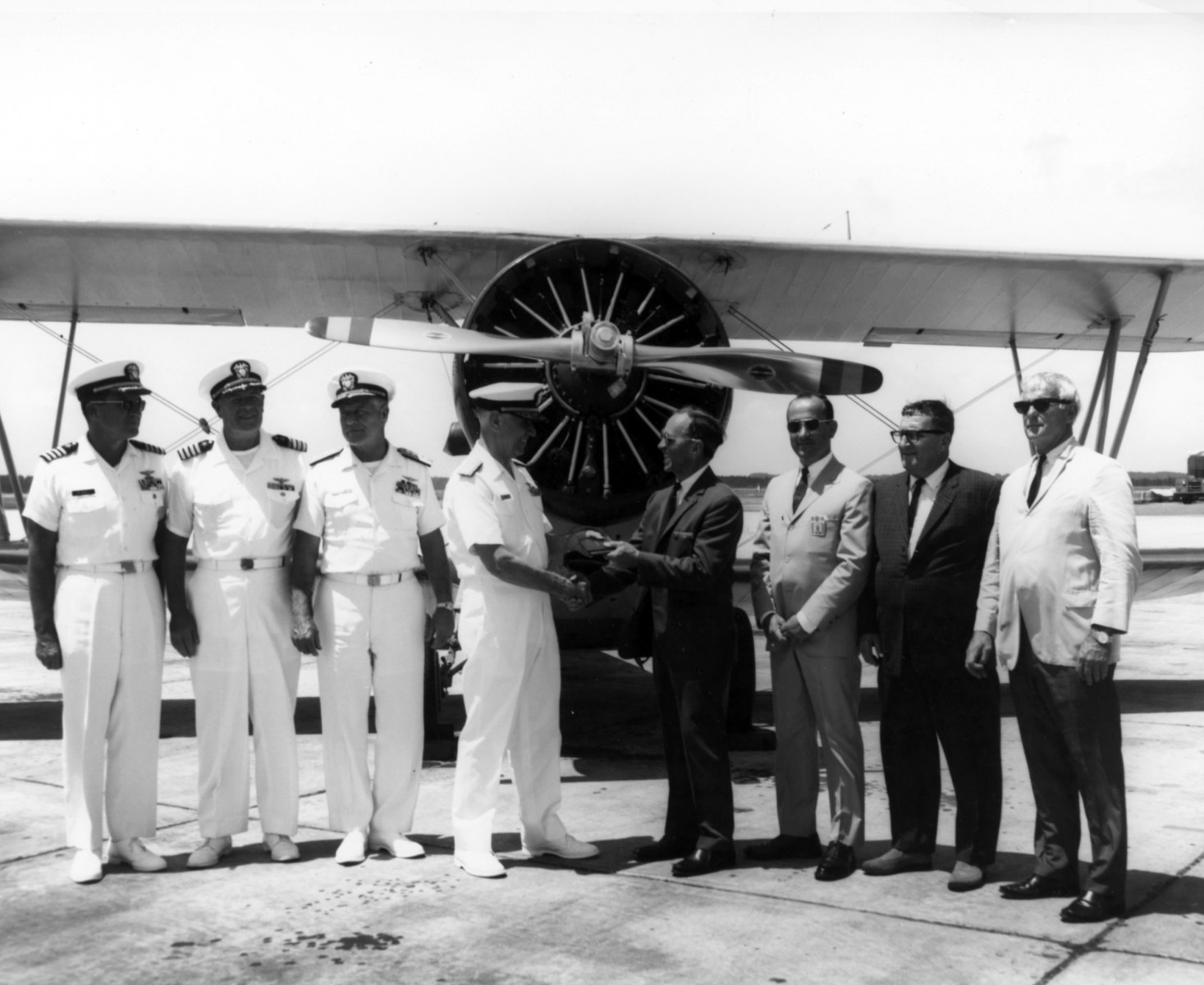 Now that N2803J was at last in Grumman’s possession, the company got to work on giving the aircraft a more thorough restoration with the resources at their disposal. Grumman painted the CC&F G-23 in the markings of FF-1 BuNo 9358, an aircraft assigned to VF-5B, known as the Red Rippers (now VFA-11) stationed aboard the USS Lexington (CV-2) during the 1930s. The aircraft would also have its Pratt & Whitney R-1340 Wasp engine and its three-blade propeller replaced by a Wright R-1820 Cyclone with a two-blade propeller. Grumman would house the aircraft at their headquarters at Grumman Bethpage Airport, but while the aircraft would make some public appearances at airshows on the US East Coast and was displayed in publicity photos with the latest airplanes built by Grumman, such as the Gulfstream II business jet and General Dynamics–Grumman F-111B, the company ultimately planned to donate the old biplane to the National Naval Aviation Museum at Naval Air Station Pensacola, Florida.